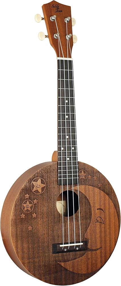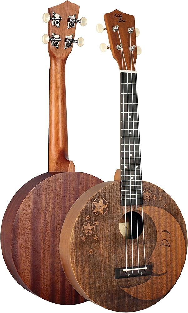 The Eddy Finn Moon Uke is one of the most sought after ukuleles in our company's history! From its charming moon and stars laser carving on the front to the round shape of the body, players of all levels and skill will find this uke fun to play. Features: Concert Tuning, 18 Frets, Mahogany Top/Back/Sides, Blackwood Fingerboard, Okoume Neck, Blackwood Bridge, ABS Nut & Saddle, Open Pore Finish, Includes Basic Nylon Gig Bag.