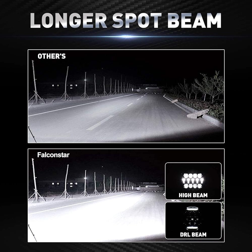 شريط إضاءة LED مستدير مقاس 7 بوصة، Falconstar 60W Flood Spot Combo Beam LED Light Pods مع ضوء الجري أثناء النهار، أضواء القيادة على الطرق الوعرة لشاحنة بيك اب SUV ATV UTV، قطعتان