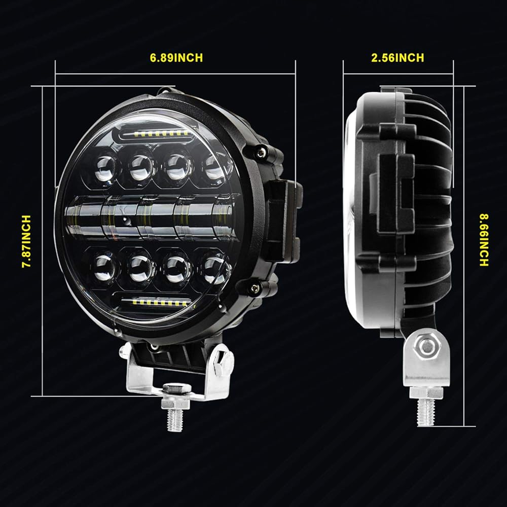 【أداء عالي】 يتحمل البيئات القاسية بفضل هيكل الألومنيوم المصبوب الذي يوفر القوة والمتانة. تتمتع كبسولات LED المستديرة مقاس 7 بوصات بعمر افتراضي يصل إلى 50000 ساعة وهي حاصلة على تصنيف IP68 المقاوم للماء والغبار والزلازل والتآكل للبيئات القاسية. قم بترقية سطح عدسة الكمبيوتر الشخصي مع نقل الضوء العالي.