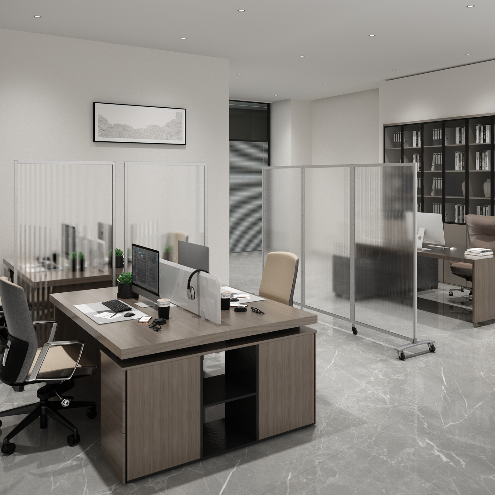 فصل المساحة - يبلغ ارتفاع هذا المقسم 70 بوصة، وهو مرتفع بما يكفي لإنشاء مساحة شخصية مغلقة. ولكن على عكس الجدران العادية المغلقة تمامًا، لا تزال هناك مساحة في الجزء العلوي من الشاشة لتدوير الهواء. يمكن أن يجعلك تقسيم الغرفة هذا أكثر استرخاءً عند توفير الخصوصية في نفس الوقت.