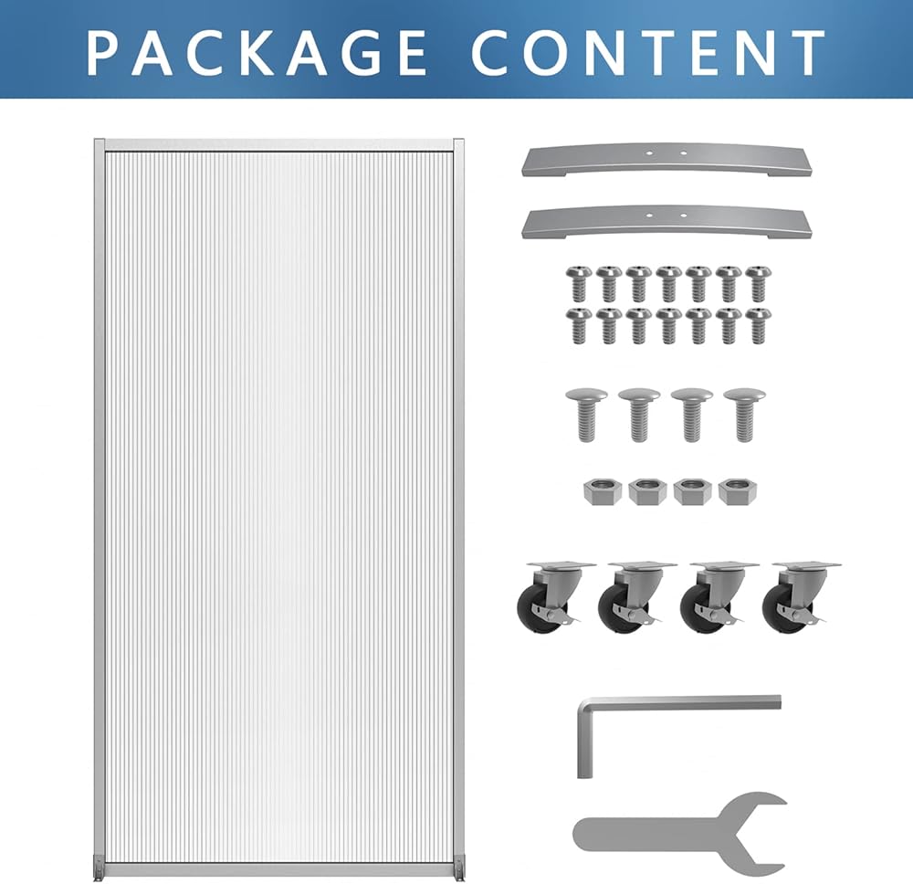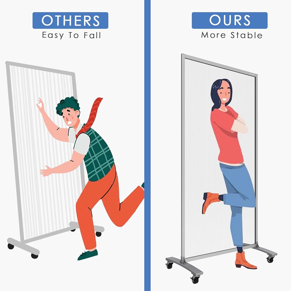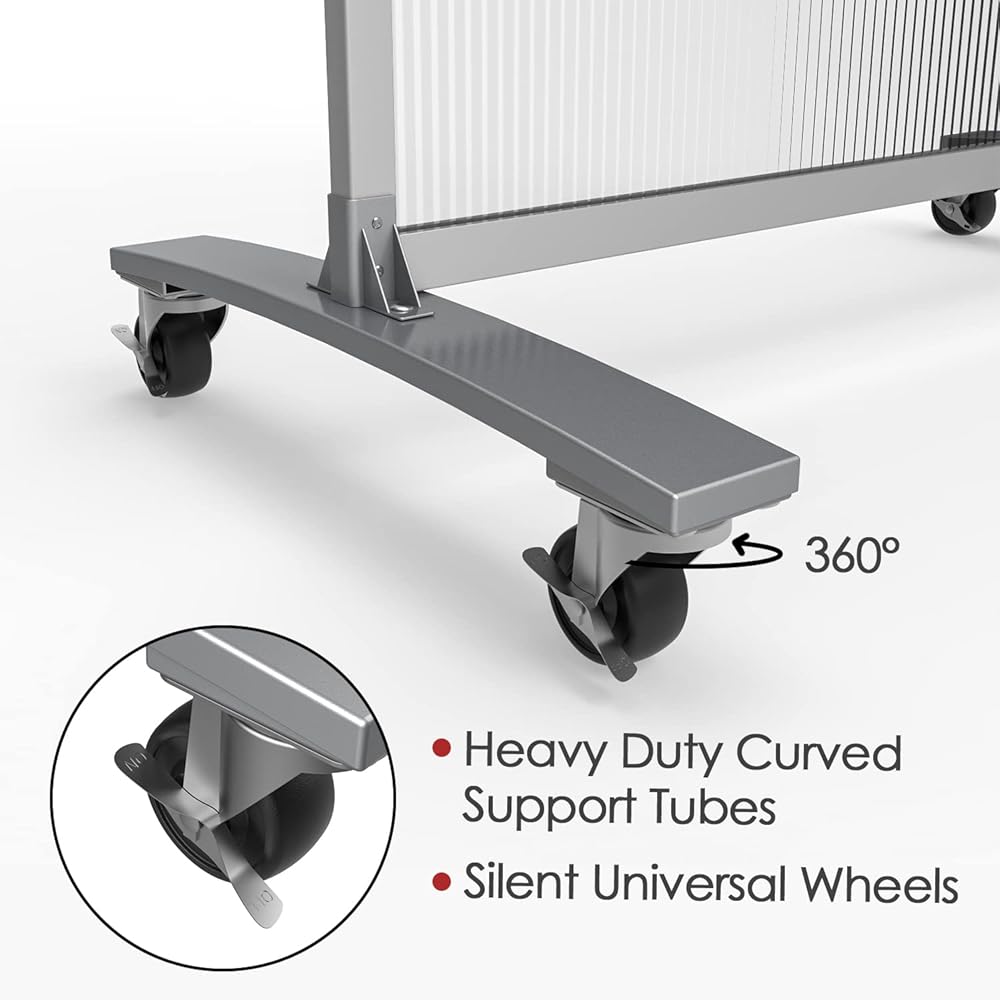مادة فاخرة - لوحة مقسم الغرفة مصنوعة من لوح ضوء الشمس الفاخر المتين. الإطار الفولاذي قوي ومتين بما يكفي لاستخدامه لفترة طويلة. مجهزة بـ 4 عجلات عالمية صامتة وأنبوبي دعم في الأسفل، الشاشة أكثر استقرارًا وليس من السهل تفريغها.