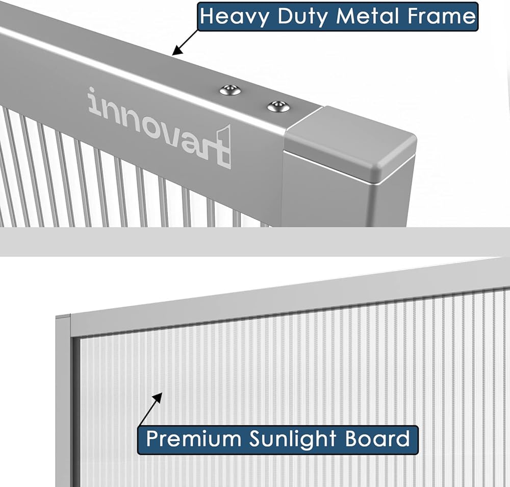 INNOVART مقسم جداري متنقل 70 بوصة ارتفاع × 35 بوصة عرض، فواصل غرفة التقسيم المتداول جدار مكتب قائم بذاته مع عجلات، لوحة ضوء الشمس جدران مسح جافة للمكاتب والصالونات وصالونات الأظافر والمطاعم