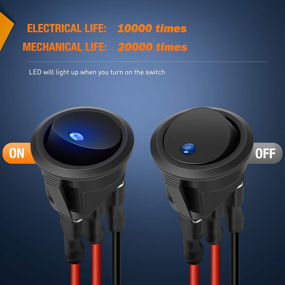 • Package Includes: 8 x Blue Round Toggle LED Switches; 16 x Red wires; 8 x Black wires.2 Year Warranty by Nilight.