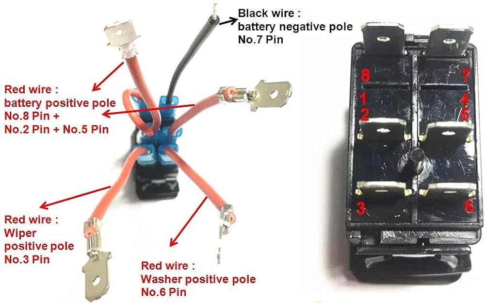 [Wide application]: Suit well for controlling electrical equipments in the car ,boat , truck , yacht ,caravan,ATV and so on.IP65 waterproof and environment friendly.Package included : 1x 6 Pin Rocker Switch,1X jumper wires set
