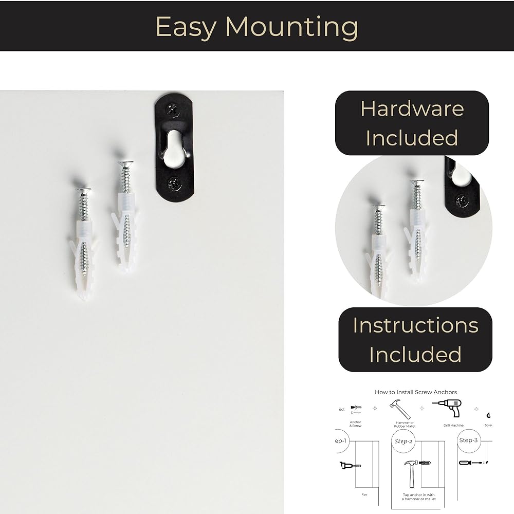 The front of the hanging organizer showcases a patented geometric design, adding sophistication and uniqueness to your décor. The black key hooks complement the white wood, creating a striking contrast and lending a modern aesthetic to the organizer.