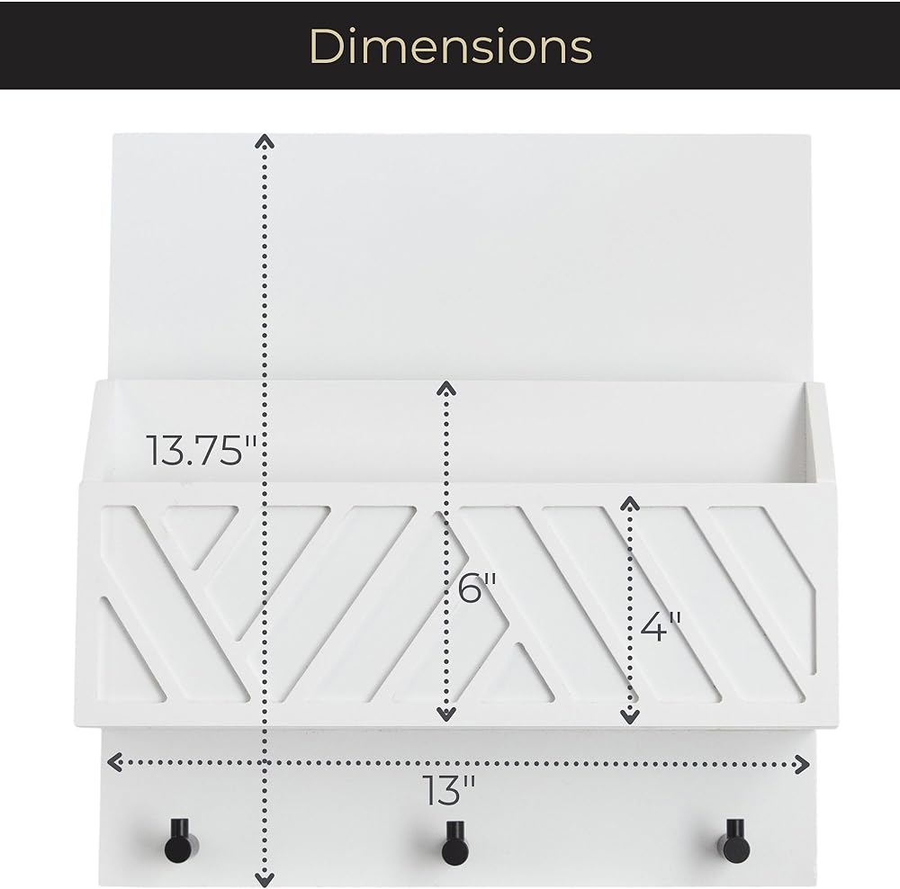 Add stylish flair to keeping mail organized with this Geometric Pattern 2-tiered wall-mounted white wooden mail organizer. Crafted from high-quality MDF wood, this organizer is built to last and offers ample storage for your mail, keys, and more.