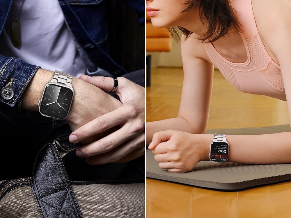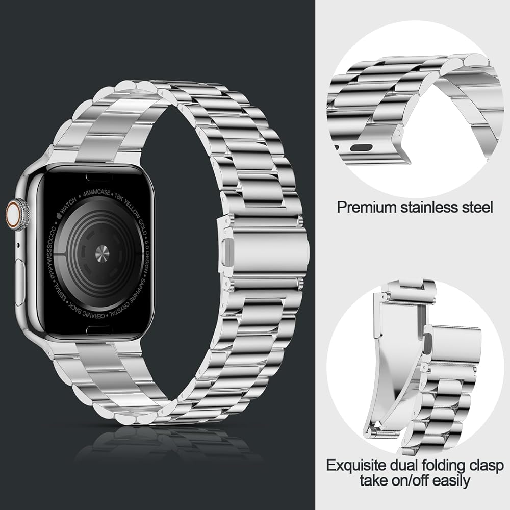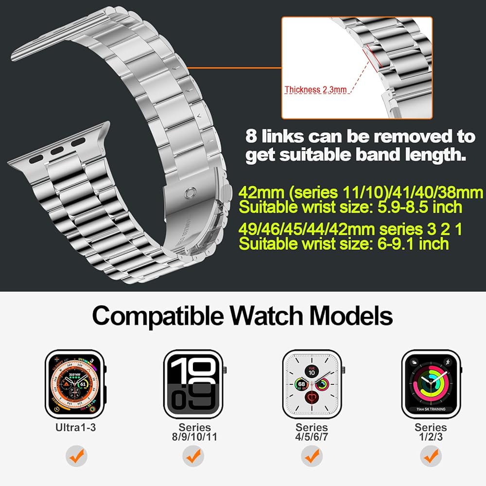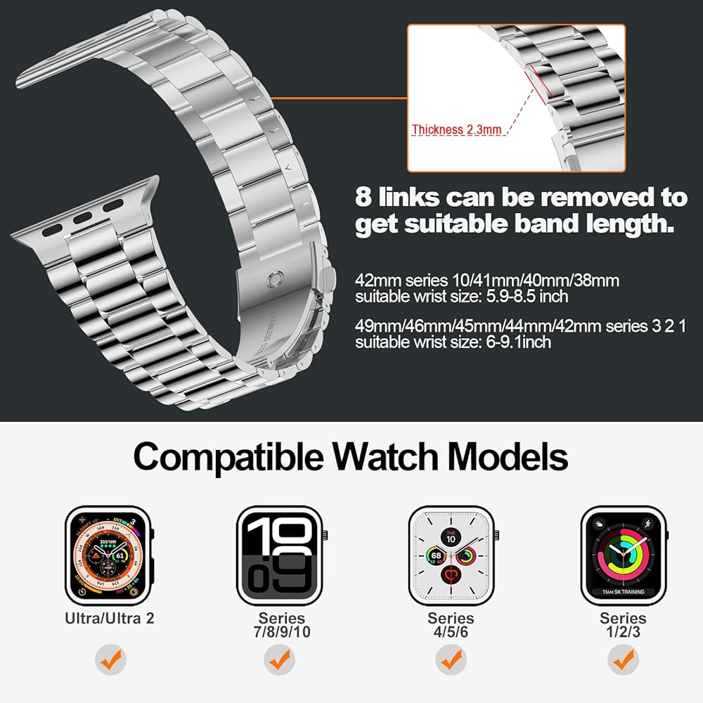 [حزام فائق للرجال/النساء] يناسب المعصم من 5.5 إلى 8.1 بوصة. تصميم خصر متدرج صغير لهذا السوار المصنوع من الفولاذ المقاوم للصدأ مخصص لساعة أبل مقاس 49 ملم للرجال والنساء ويوفر ارتداءً أنيقًا