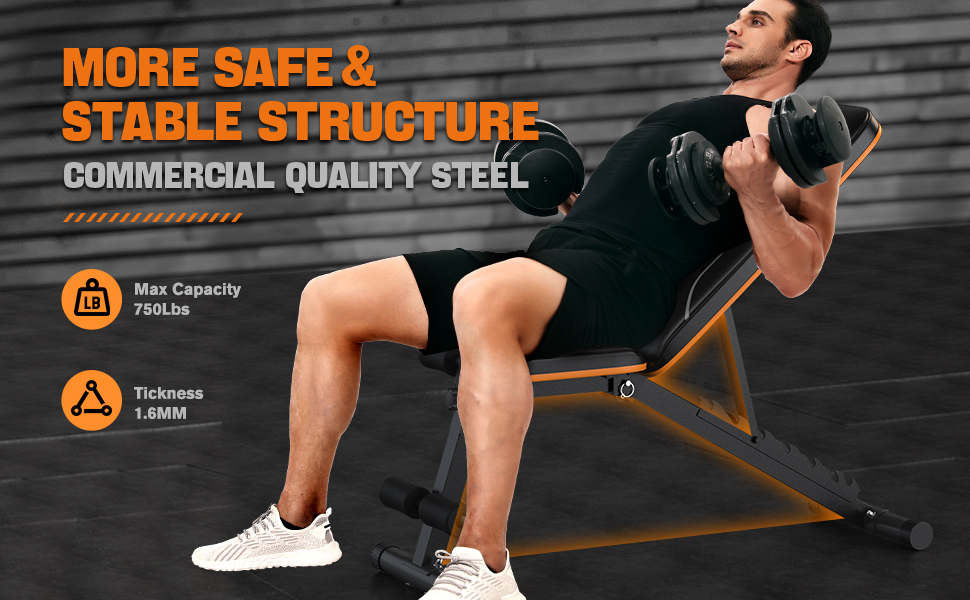 【مستقر وآمن】مصمم بإطار هيكل مثلث فريد من نوعه، يتوافق مع الفولاذ التجاري عالي الجودة (السُمك 1.6 مم)، سعة الوزن الحقيقي 750 رطل. القاعدة والإطار المستقران، والشقوق المزدوجة القوية والمقابض المعززة تجعلك تشعر بالأمان والموثوقية عند ممارسة الرياضة.
