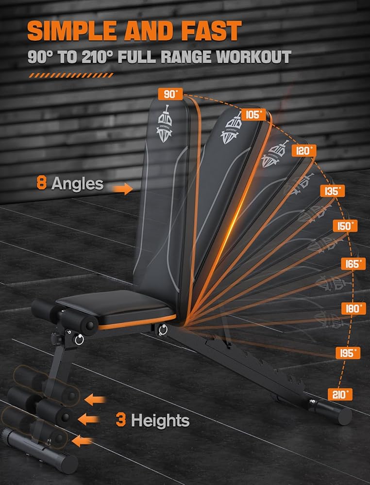【مسند ظهر قابل للتعديل بسهولة】 يتيح لك هذا المقعد متعدد الاستخدامات الاختيار من بين 8 أوضاع خلفية مختلفة (تتراوح من 90 درجة إلى -30 درجة). ما عليك سوى رفع مسند الظهر، وضبطه على الوضع المطلوب، وسيتم تثبيته تلقائيًا في مكانه. مقعد مستقيم رائع، ومقعد مائل، ومقعد مسطح، ومقعد منحدر، للانتقال بكفاءة بين الأوضاع للحصول على تمرين شامل لكامل الجسم.