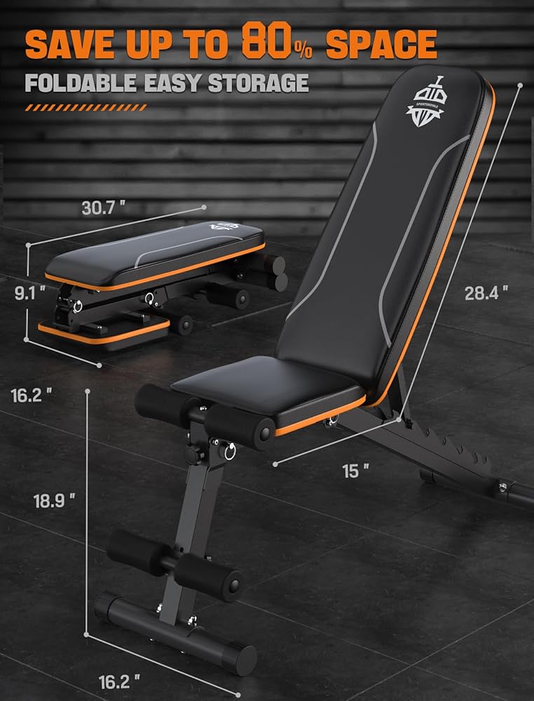 【صغير الحجم وموفر للمساحة】مقعد التمرين العملي القابل للطي من سبورتس رويالز سريع التجميع والتخزين المريح، مقاس 30.7 × 16.2 × 9.1 بوصة فقط عند طيه وتحريكه بسهولة. يمكن الاحتفاظ بها تحت السرير أو في الزاوية بعد التمرين، مما يوفر مساحة 80%.