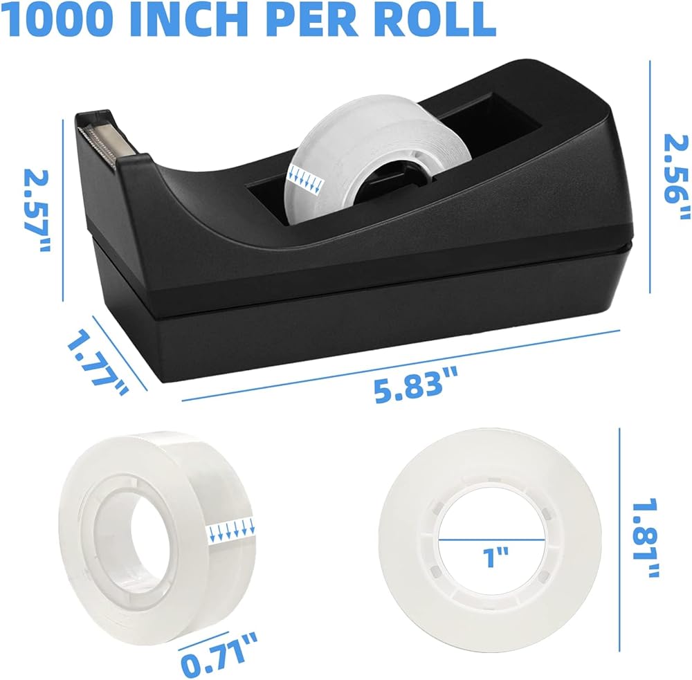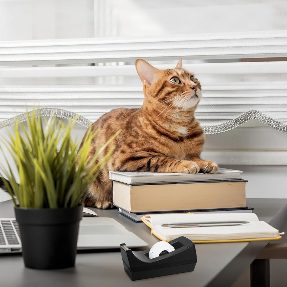 😉سهل الاستخدام: موزع الشريط المكتبي لتغليف الهدايا بشفرة عالية الجودة، سهل قطع الشريط بسرعة ونظيفة، يمكنك قص الشريط بيد واحدة فقط.