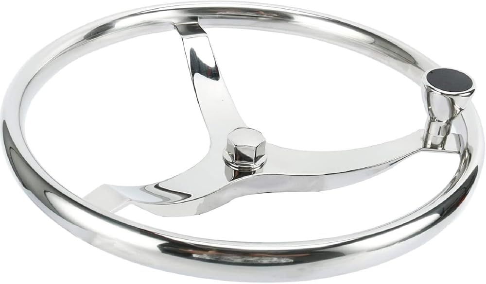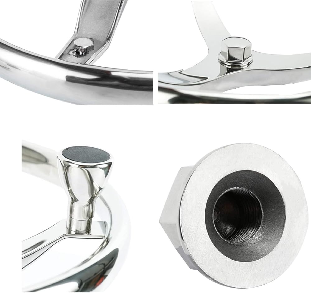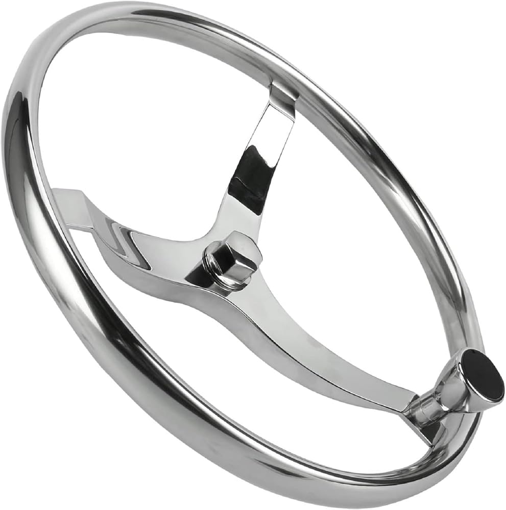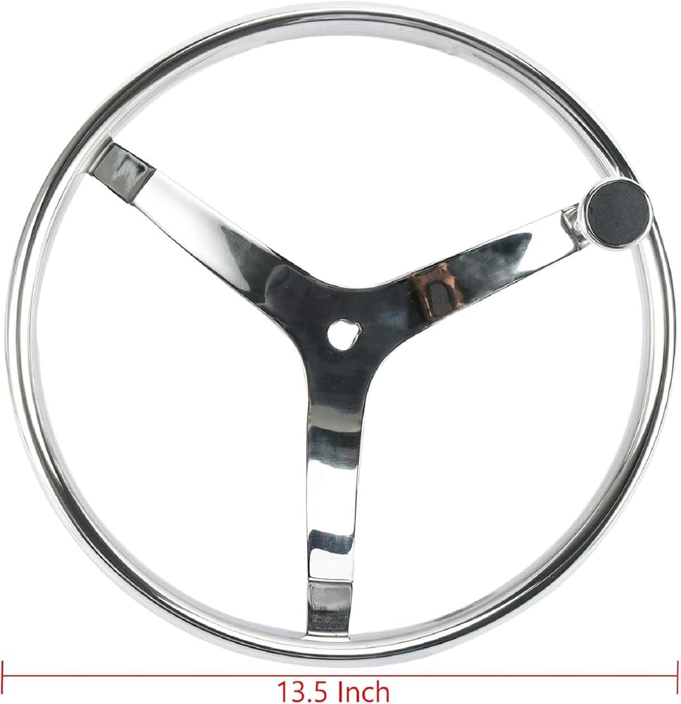 YaeMarine Stainless Boat Steering Wheel 3 Spoke Sports Steering Wheel Marine Steering Wheel 13-1/2" Dia with 1/2" Nut and 7300S1 Turning Knob
