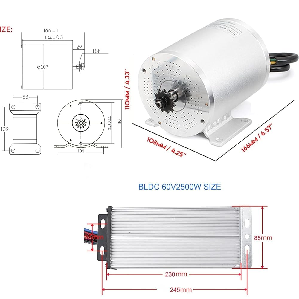 1. محرك عالي السرعة: مجموعات محركات DC قوية بدون فرشات بقدرة 2500 وات 60 فولت، السرعة المقدرة بدون تحميل 4400 دورة في الدقيقة، الحد الأقصى يمكن أن يكون 5800 دورة في الدقيقة، التيار المقنن للمحرك 45 أمبير.