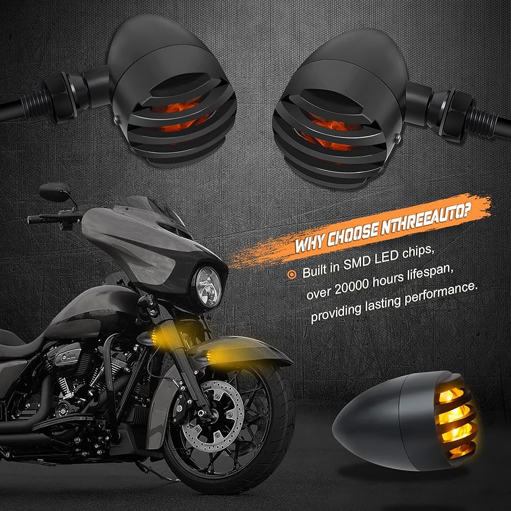 【مصممة بشكل جيد وبنية جيدة】الوميض البسيط بالكامل مصنوع من الألومنيوم عالي الجودة بآلة CNC، قوي جدًا ويجعله مقاومًا للصدمات والتآكل ومقاوم للماء. أسود مع عدسات كهرمانية، أضف ميزات إلى دراجتك النارية. مصابيح COB مدمجة، أكثر سطوعًا بمقدار 3 مرات من ضوء المصنع، مما يوفر إخراج ضوء أكثر سطوعًا، ويجعل قيادتك أكثر أمانًا