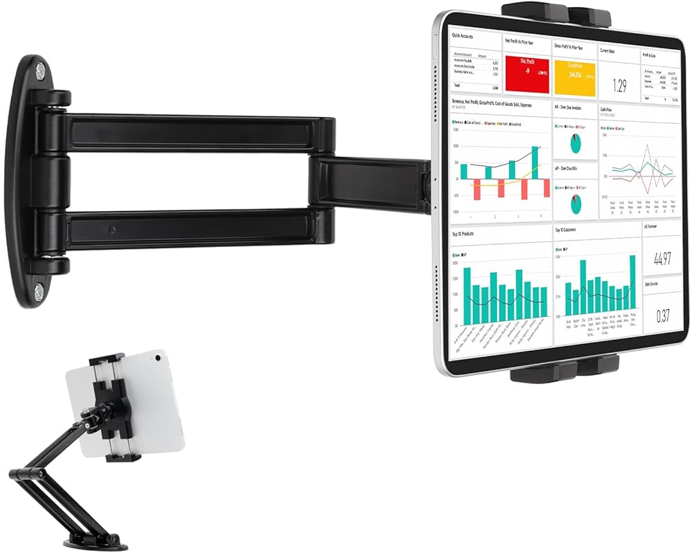 【تصميم قابل للتعديل】: يمكن طي حامل حامل الكمبيوتر اللوحي بذراع واحدة من اليمين واليسار للاسترخاء، مما يسمح لذراع تثبيت آخر بتمديد وطي الحرية، وأوضاع دوران 180 درجة وأوضاع أفقية، وضمان سهولة القراءة المثالية عند تثبيت الجهاز اللوحي على الحائط، واللف 360 درجة. ° حلقة رأس كروية معدنية قابلة للدوران، يمكن للجهاز اللوحي التقاط أفضل رؤية بسهولة.