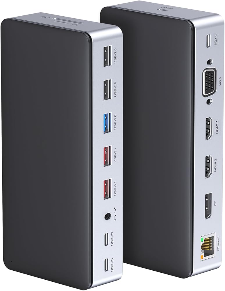 USB C Station Station Dual Monitor ، 16 في 1 محول متعدد المحول مع شاشة ثلاثية (2 HDMI ، DP ، VGA ، 2 PD 100W و 18W ، RJ45 ، USB C&A ، SD/TF ، MIC/AUDIO)