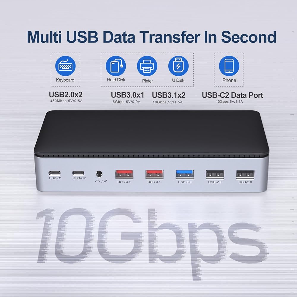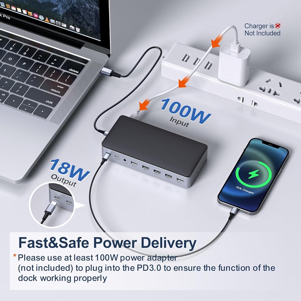 توصيل طاقة موثوق به وشبكة جيجابت إيثرنت - تم تصميم قاعدة الإرساء الخاصة بنا بمنفذ PD 3.0 الذي يسمح بإدخال 100 واط ويوفر شحنًا عالي السرعة مع الشاحن الأصلي، مما يجعلك لا تقلق بشأن تخزين الطاقة (ينطبق فقط على الأجهزة التي تحتوي على بروتوكول PD). منفذ جيجابت إيثرنت مع حالة إيثرنت مستقرة وسريعة، مساعدة مثالية لجهاز الكمبيوتر المحمول الخاص بك بدون مقابس إيثرنت