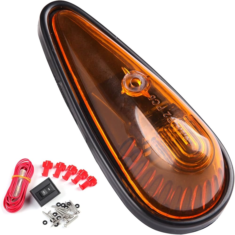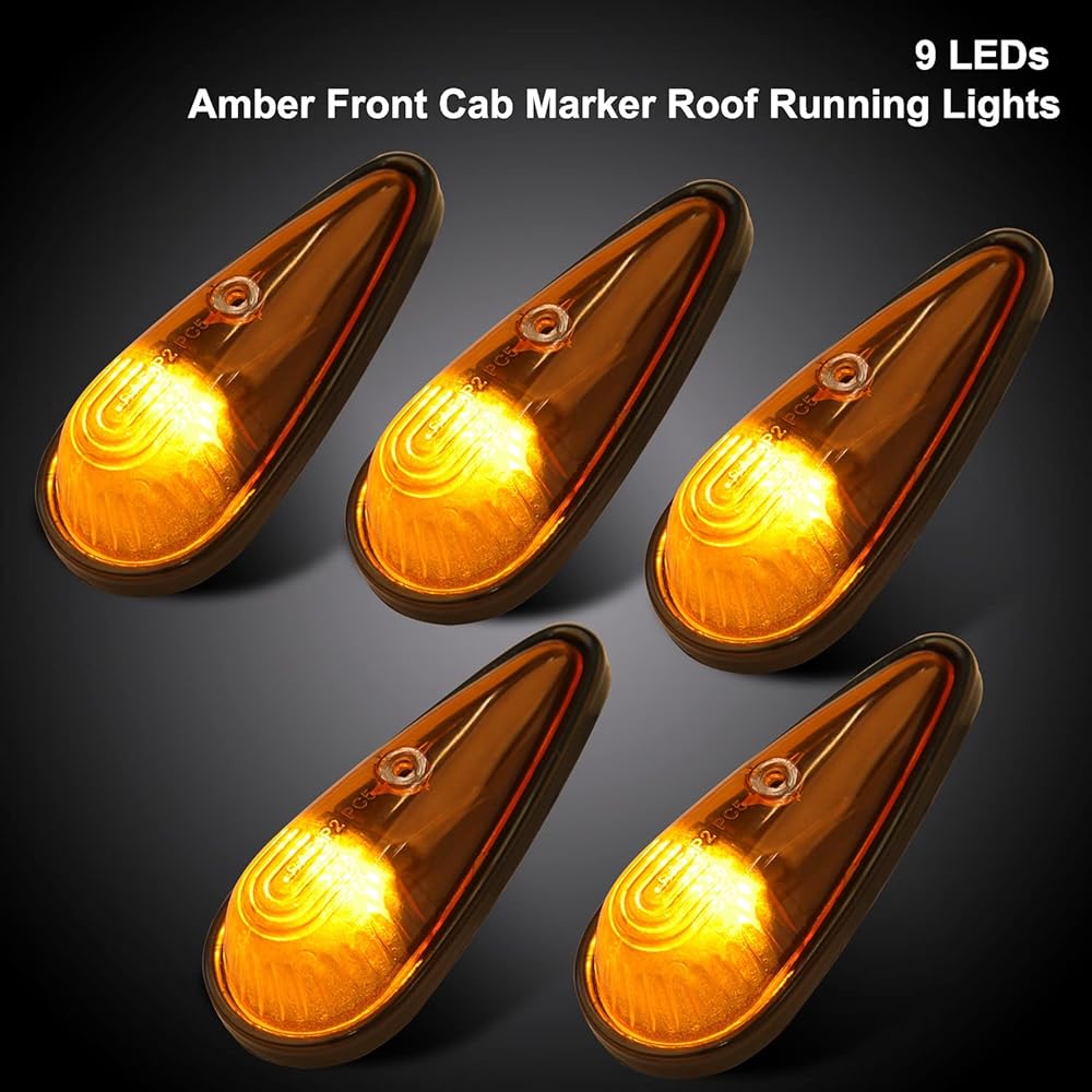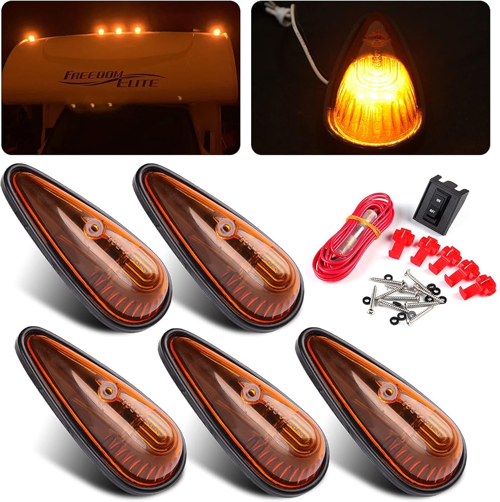 تتميز هذه القائمة بمجموعة مصابيح السقف لعلامة الكابينة على شكل دمعة من العنبر بما في ذلك 5 قطع من مصابيح علامة الكابينة على شكل دمعة وجميع أجهزة التثبيت الضرورية، وحزام الأسلاك، وحامل المصهر ومفتاح تشغيل/إيقاف تشغيل لتشغيل الأضواء بشكل مستقل عن المصابيح الأمامية. مثالي في الجزء الأمامي من المنازل المتنقلة؛