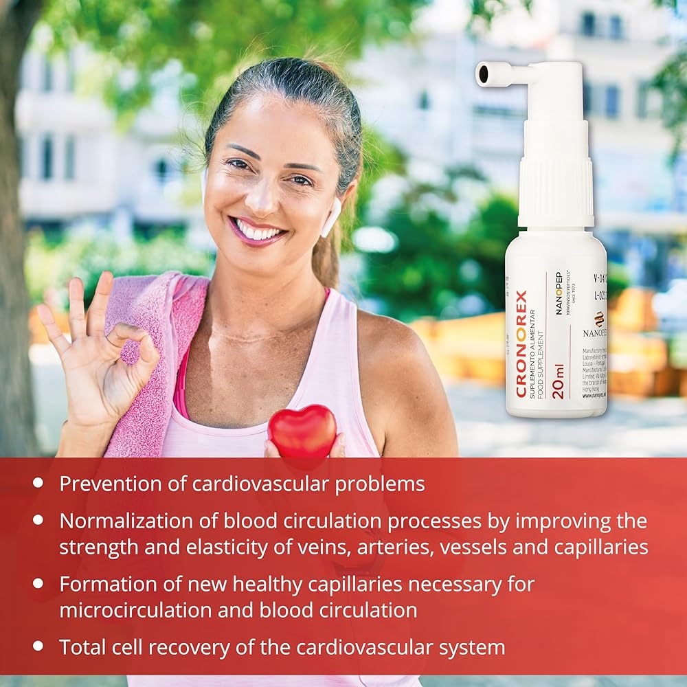 بخاخ الببتيد لنظام القلب والأوعية الدموية من نانوبيب كرونريكس 20 مل، يدعم ويقوي نظام القلب والأوعية الدموية، ويعزز الدورة الدموية المحسنة - صنع في البرتغال