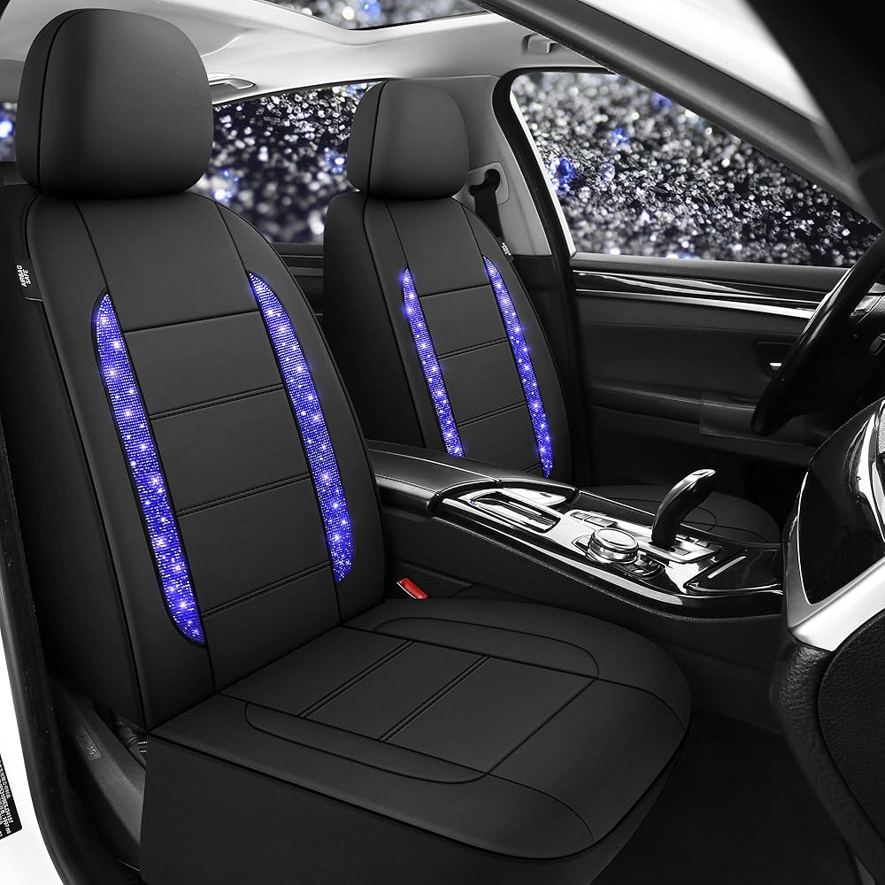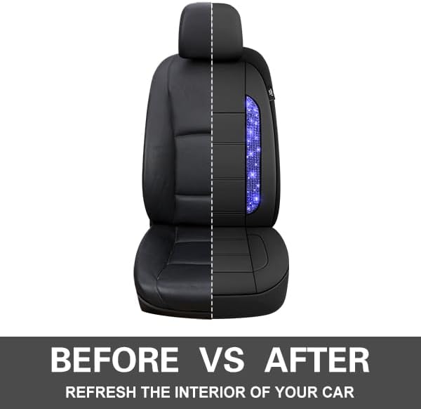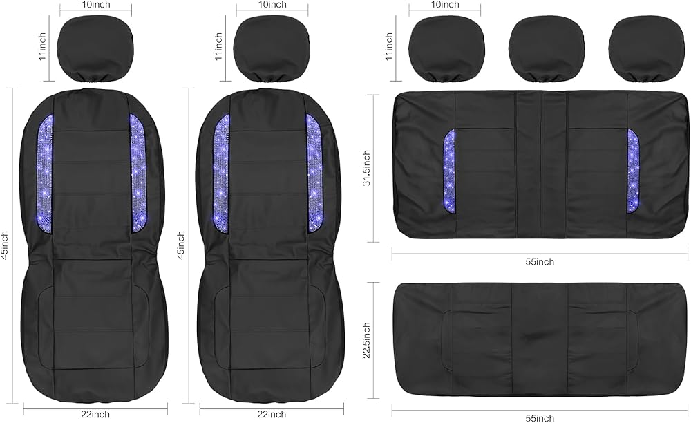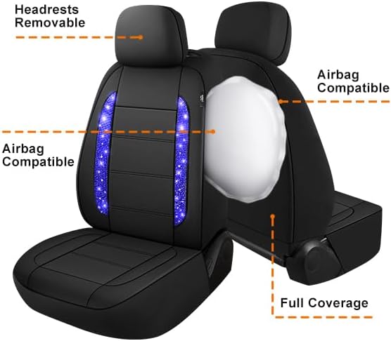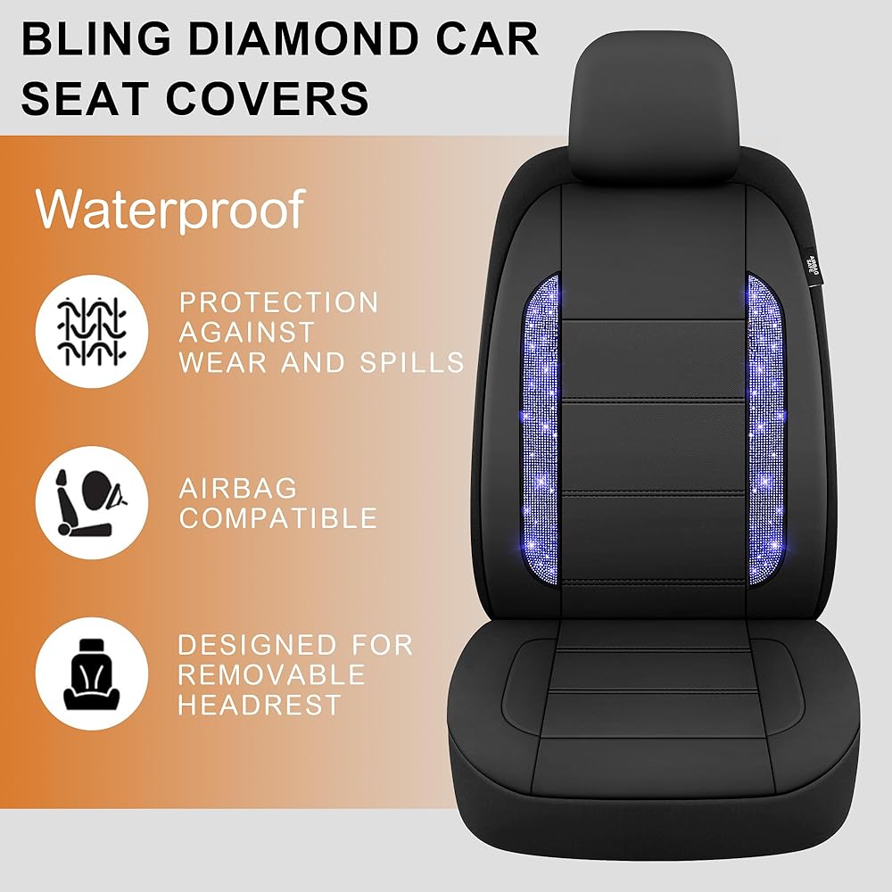 【مادة عالية الجودة】لا يضيف غطاء المقعد لمسة من الفخامة إلى الجزء الداخلي لسيارتك فحسب، بل يضمن أيضًا تثبيت أحجار الراين بشكل آمن، مما يقلل من فرص سقوطها أثناء الاستخدام اليومي. مصنوع من الجلد الفاخر، السطح الجلدي تمت معالجته أيضًا ليكون مقاومًا للماء، مما يحميه من الانسكابات والبقع اليومية.
