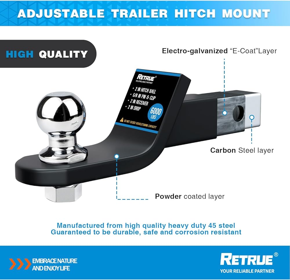 قدرة سحب عالية ممتازة - مع قدرة سحب قوية تصل إلى 6000 رطل، يمكن لحامل الكرة المقطورة هذا التعامل بسهولة مع العديد من مهام السحب شديدة التحمل. سواء كانت عربة سكن متنقلة كبيرة أو قارب صغير أو معدات ثقيلة، فإنها توفر قوة سحب ثابتة وموثوقة.