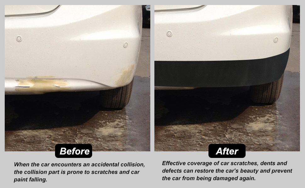 مناسب للاستخدام في الهواء الطلق - يستخدم واقي الصدمات الخلفي للسيارة شريطًا خاصًا مزدوج الجوانب لمصد السيارة 3M. يمكن لصقه بسهولة على طبقات السيارات الشفافة والبلاستيك والمعادن.
