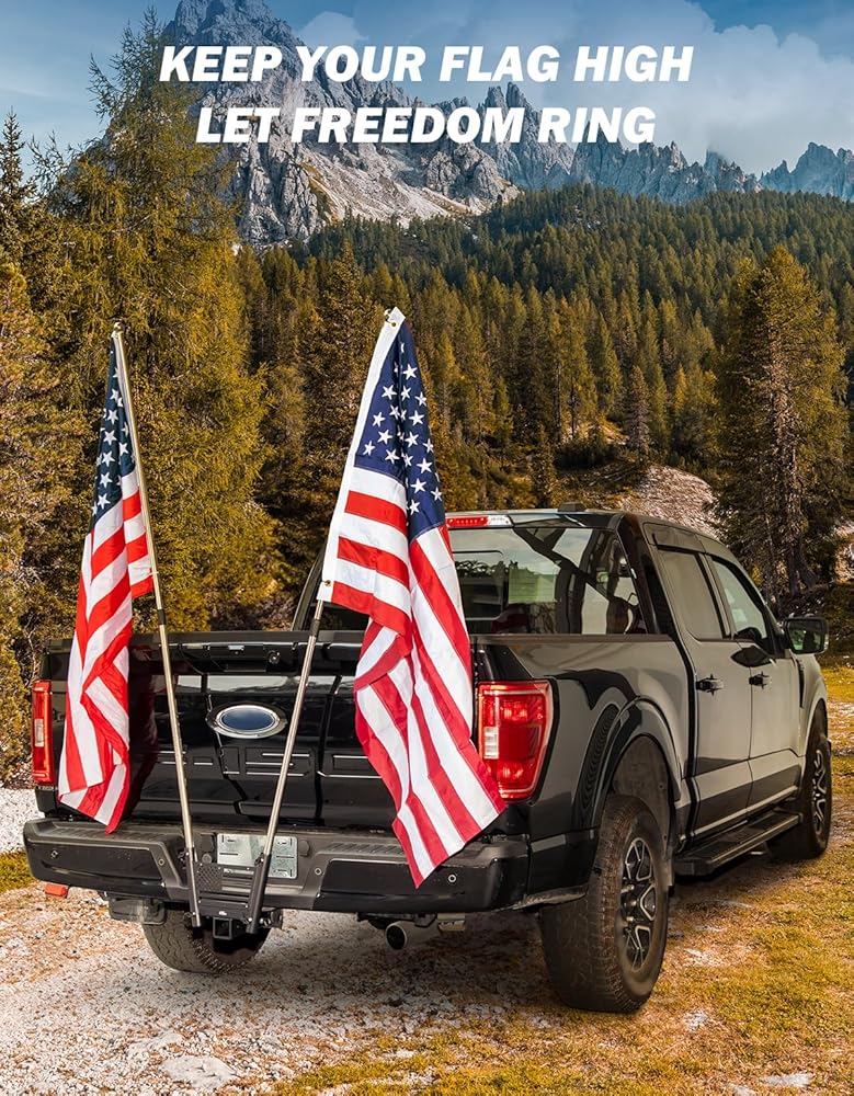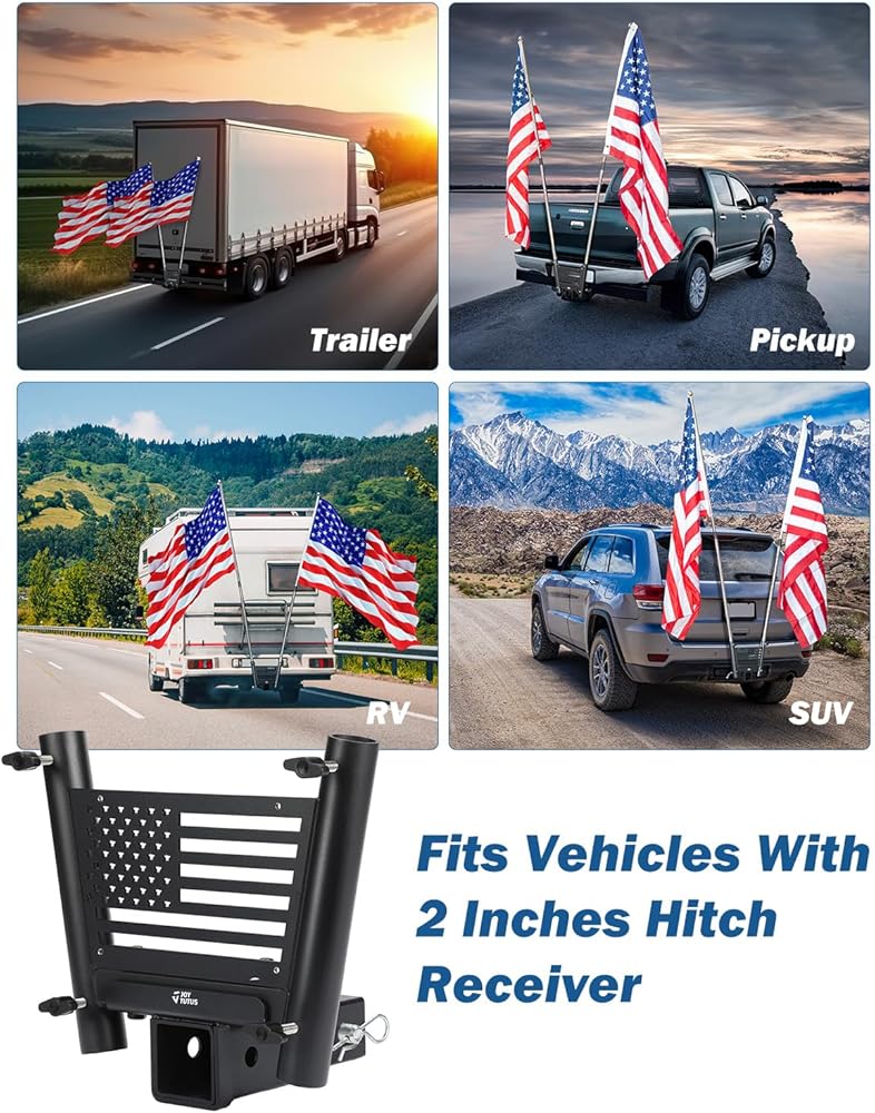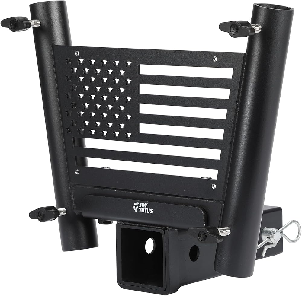 joytutus عقبة جبل حامل عمود العلم لأجهزة الاستقبال القياسية 2 بوصة، يناسب شاحنة rv سيارات الدفع الرباعي بيك اب مقطورة العربة، جبل القطب المزدوج العلم مع استقبال عقبة