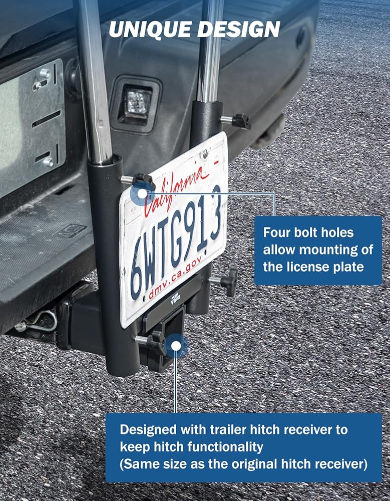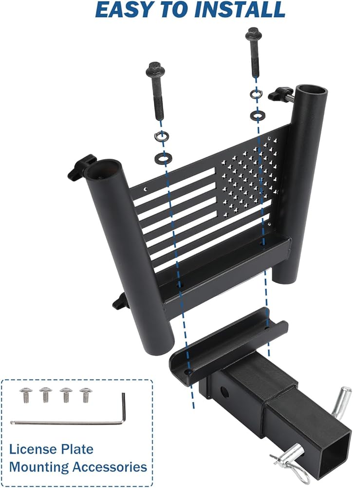 حافظ على لوحة الترخيص مرئية - يحتوي حامل عمود علم وصلة السحب هذا على فتحات مسمار لتثبيت لوحة الترخيص، مما يضمن أن لوحة الترخيص الخاصة بك مرئية بوضوح دائمًا لإنفاذ القانون والسائقين الآخرين وتتوافق مع أنظمة المرور المحلية.
