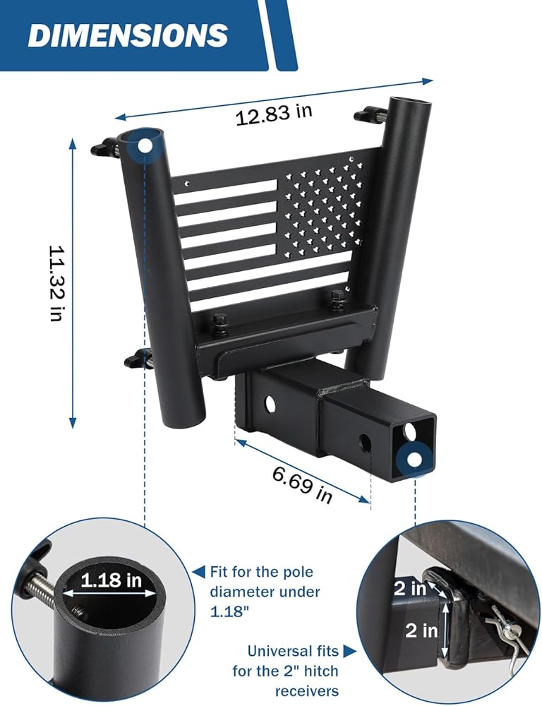 الحفاظ على وظيفة الربط - تم تصميم حامل عمود ربط العلم الخاص بنا مع جهاز استقبال وصلة ربط المقطورة، لذلك يمكنك استخدام وظيفة السحب في نفس الوقت دون تفكيك حامل عمود ربط العلم. (نصائح: جهاز الاستقبال الخاص بنا هو نفس حجم جهاز الاستقبال الأصلي.)