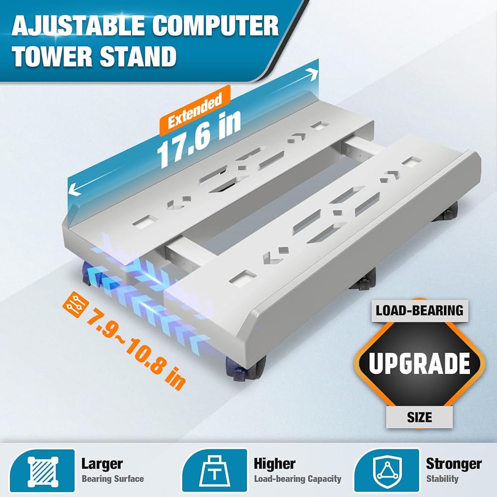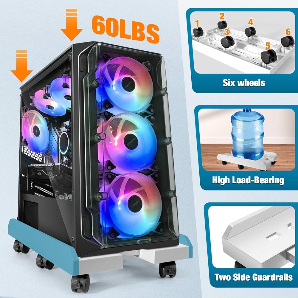 حامل كمبيوتر كبير الحجم من Seloom، حامل برج كمبيوتر قابل للتعديل مع 6 عجلات دوارة، حامل برج كمبيوتر محمول عالي التحمل، حامل سطح المكتب يناسب معظم مكاتب ألعاب الكمبيوتر
