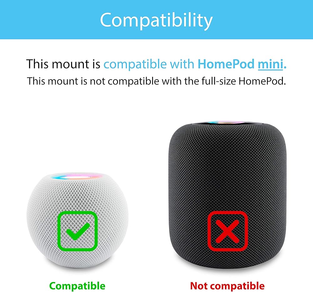 أحد الحوامل الوحيدة المتوافقة تمامًا مع الدليل الموجي الصوتي لـ HOMEPOD MINI - يتميز HomePod mini بدليل موجي صوتي يوجه الصوت نحو الجزء السفلي من HomePod mini ليعكس الصوت من سطح مستو مثل سطح العمل أو الحائط. إن انعكاس الصوت من سطح مستو هو مفتاح تجربة الصوت الغامرة بزاوية 360 درجة في HomePod mini. ونتيجة لذلك، عند التثبيت على الحائط، يجب أن يكون الجزء السفلي من HomePod mini مواجهًا للحائط لتوفير صوت واضح يملأ الغرفة.