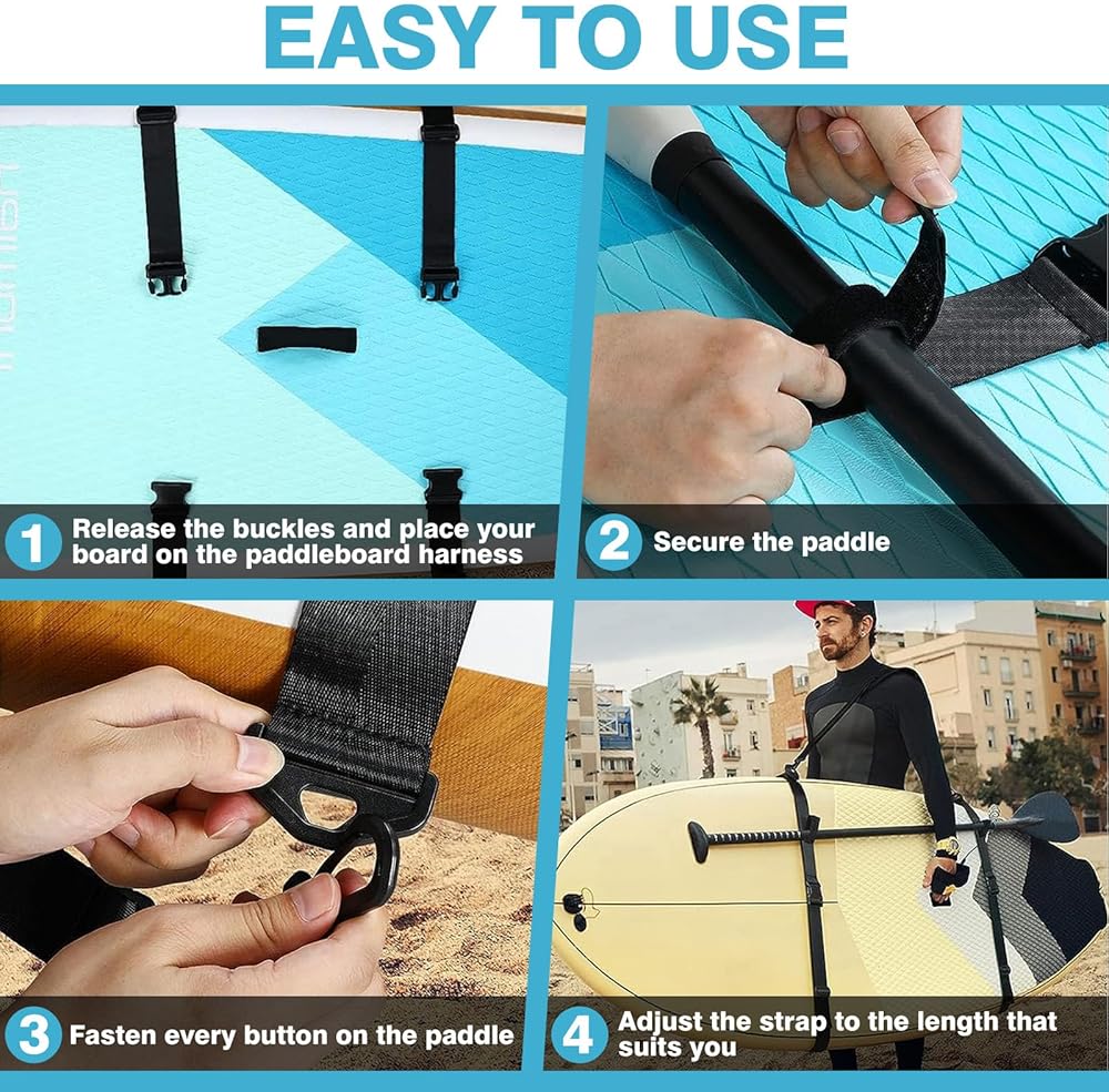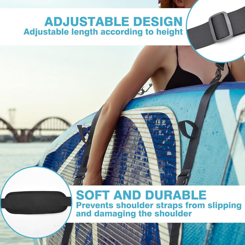 حزام حمل لوح التجديف، حزام حمل قابل للتعديل لقوارب الكاياك/SUP/ركوب الأمواج مع حمالة كتف مبطنة، أشرطة لوح مجداف بدون استخدام اليدين لحمل اللوح والمجداف، حامل لوح مجداف قوي للرجال والنساء