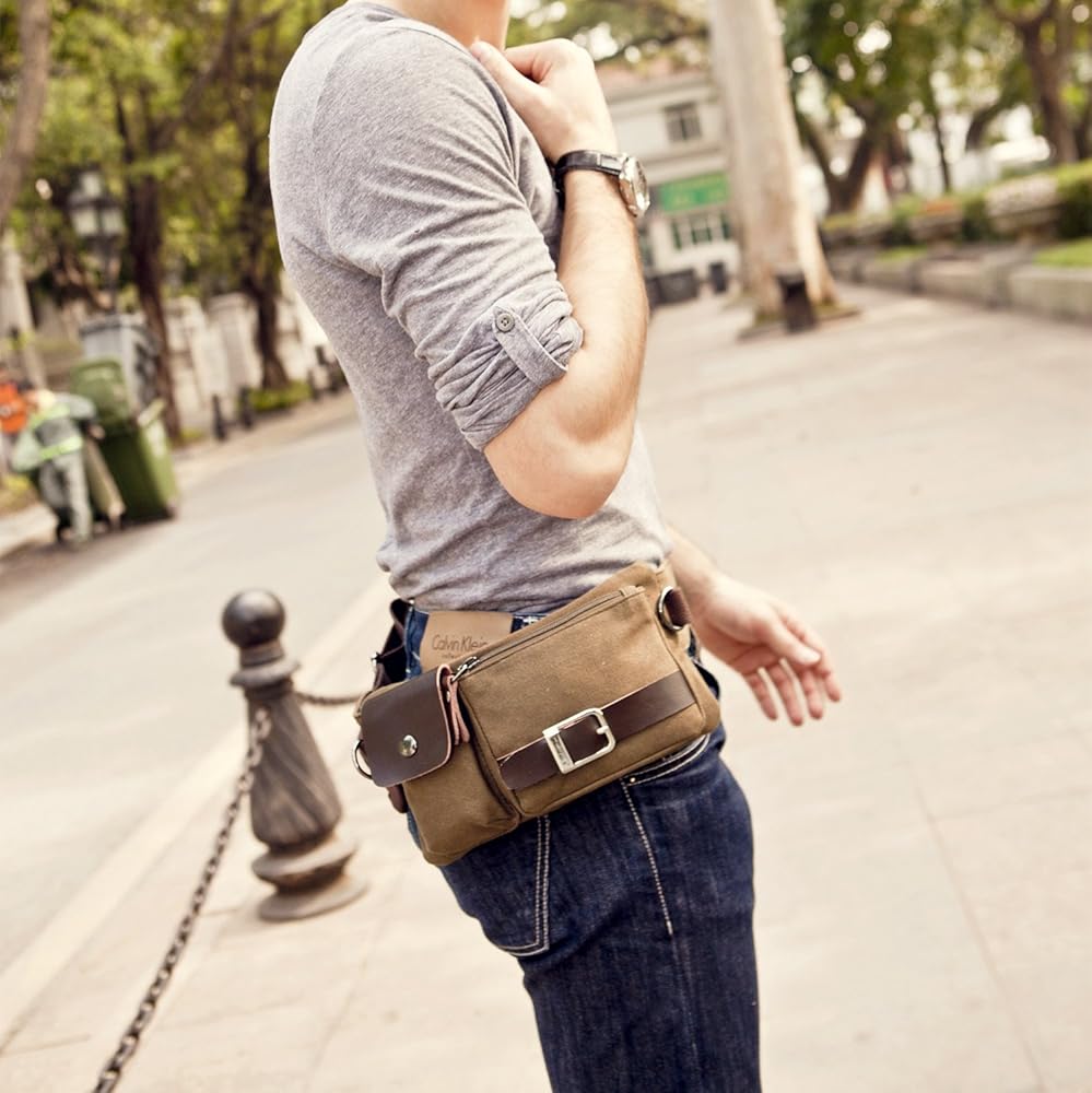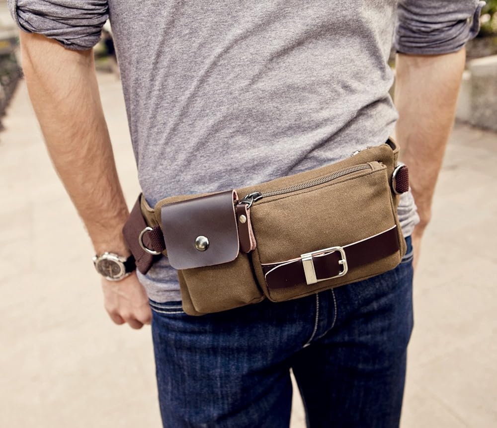 باوشا YB-01 خمر الرجال الخصر حقيبة الرياضة الخصر حزمة بوم حقيبة الأمن المال الخصر يوم حزمة الحقيبة حزام الورك حقيبة بومباغ القهوة