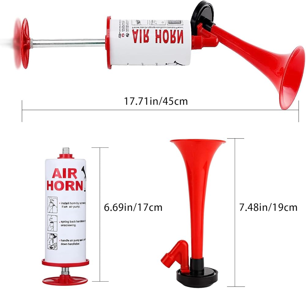 📢【حجم صغير وسهل الاستخدام】هذا البوق الهوائي الفاخر الذي يمكن حمله يدويًا صغير بما يكفي لحمله في أي مكان تريده. بالإضافة إلى ذلك، فإن الاستخدام بسيط للغاية، كل ما عليك فعله هو الضغط على المقبض لإصدار ضوضاء عالية.