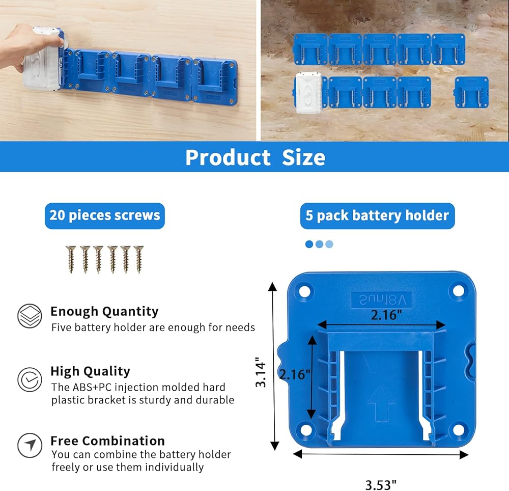 【KEEP TIDY】5pcs battery holder mount with matched screws,that will help you to mount battery holder clips on the wall,store your battery on tool organizer,that will keep your workshop much more tidy and clean,stayed organized.
