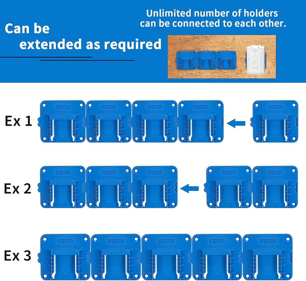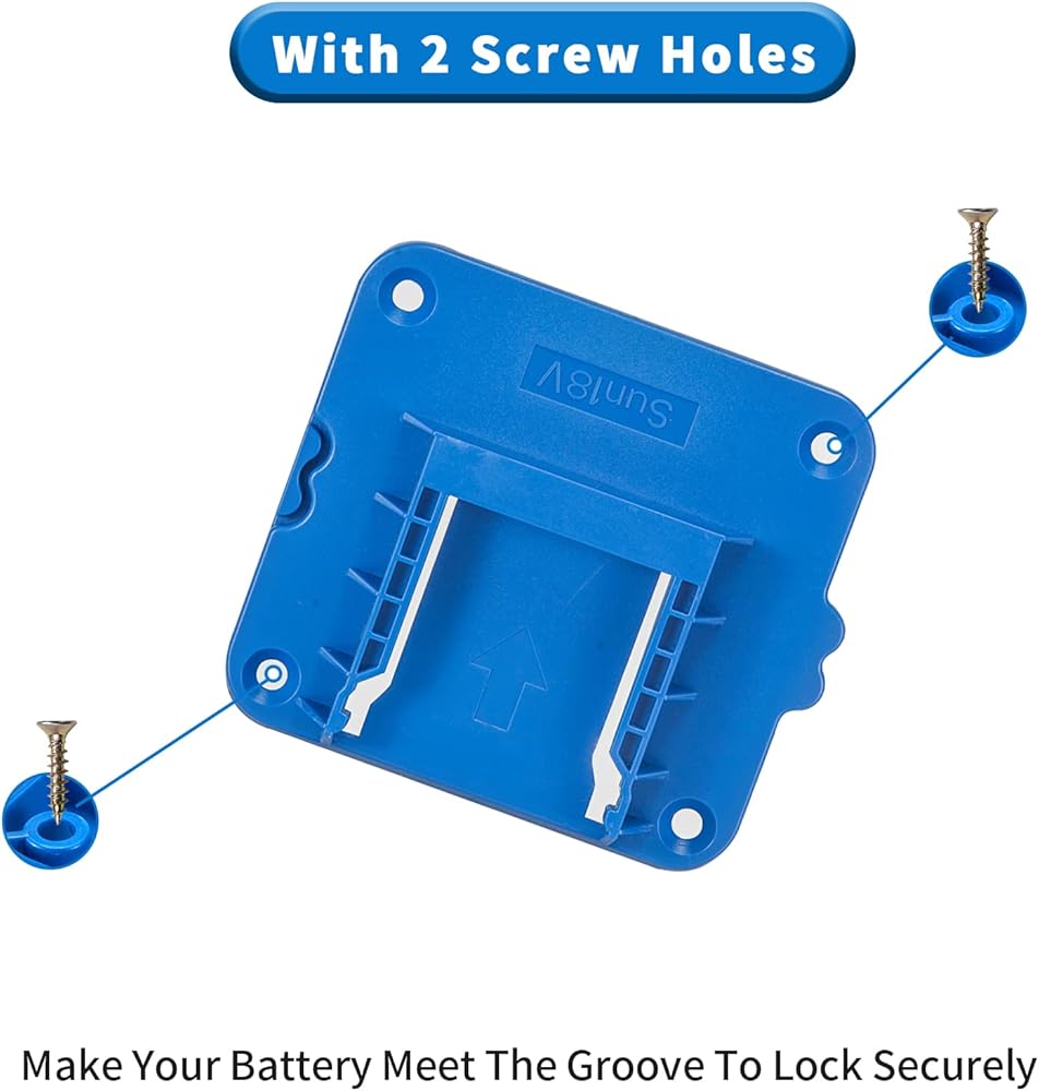 【EASY TO INSTALL】With 2 screw holes can be installed at any angle, upside down or placed under the shelf, then make your battery meet the groove to lock securely.