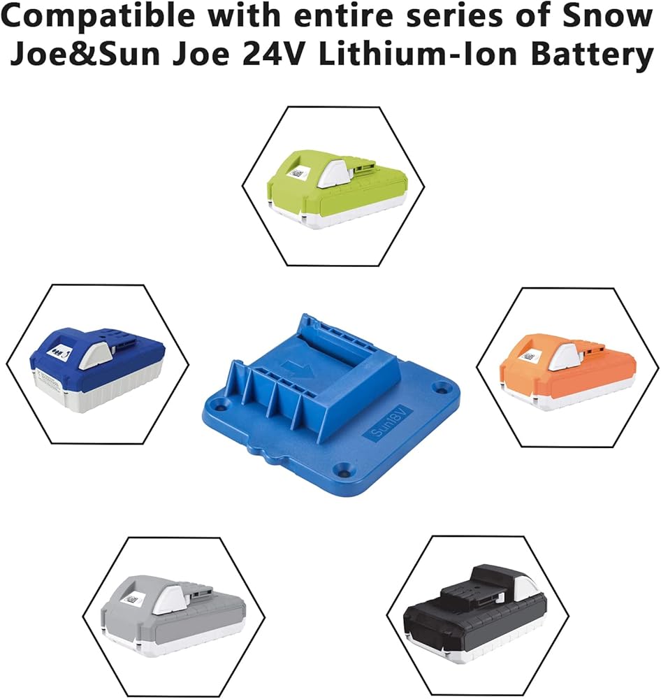 【HIGH-QUALITY MATERIALS】The Battery holder made of high-quality ABS plastic, sturdy and durable (not 3D printed); Compatible with entire series of SNOW JOE&&Sun Joe 24V battery.