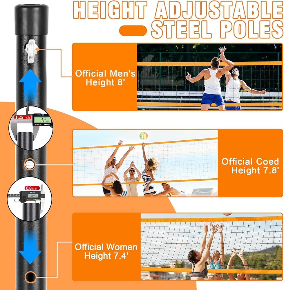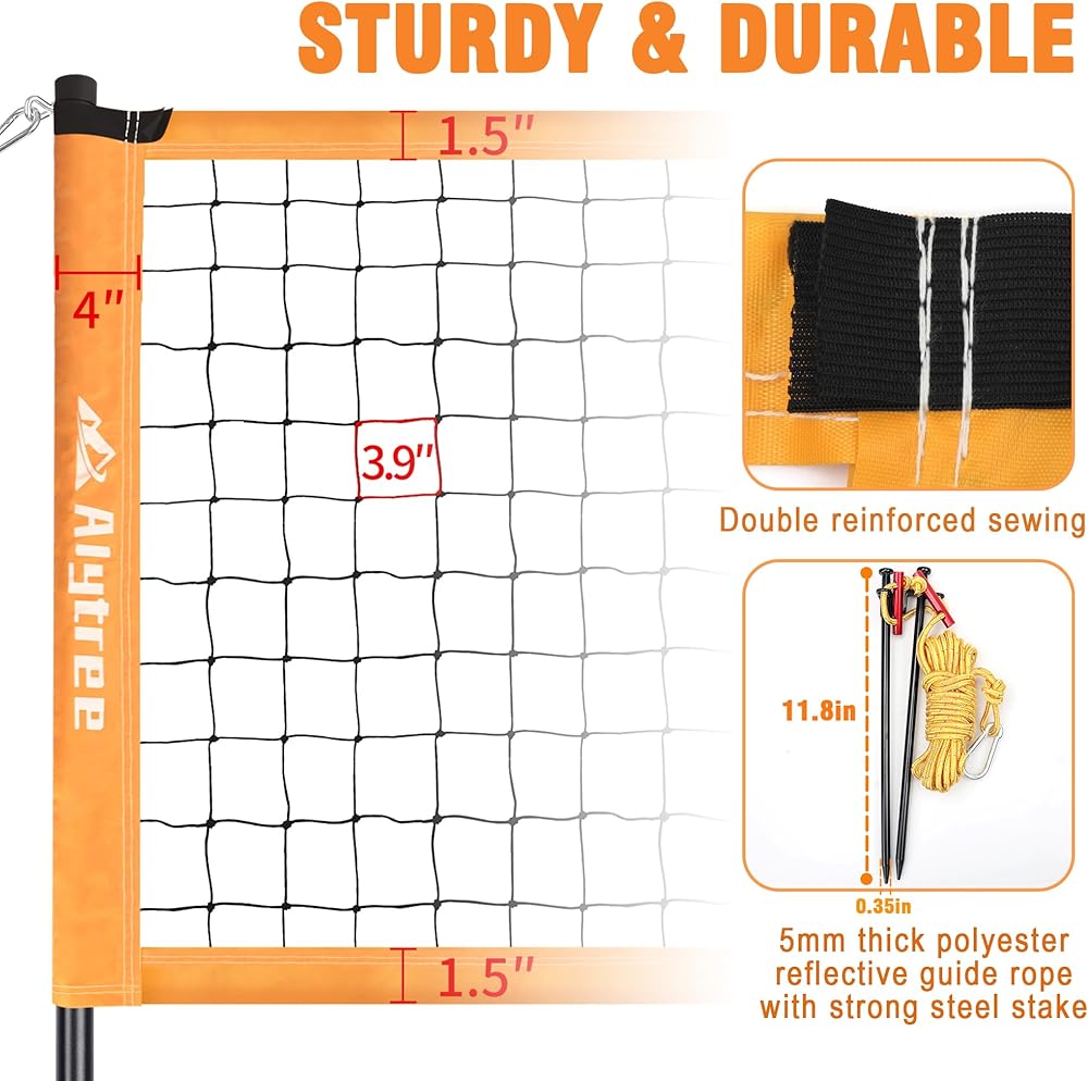 مجموعة شبكة كرة الطائرة المحمولة: شبكة الكرة الطائرة هذه سهلة التركيب والتمزق، وتستغرق 5 دقائق فقط للانتهاء. إنها خفيفة الوزن للغاية ولكنها متينة، وتأتي مع حقيبة تخزين من قماش أكسفورد يمكنها حمل جميع ملحقات شبكة الكرة الطائرة، سهلة الحمل، مثالية للشاطئ أو الفناء الخلفي أو غيرها من المشاهد الخارجية!