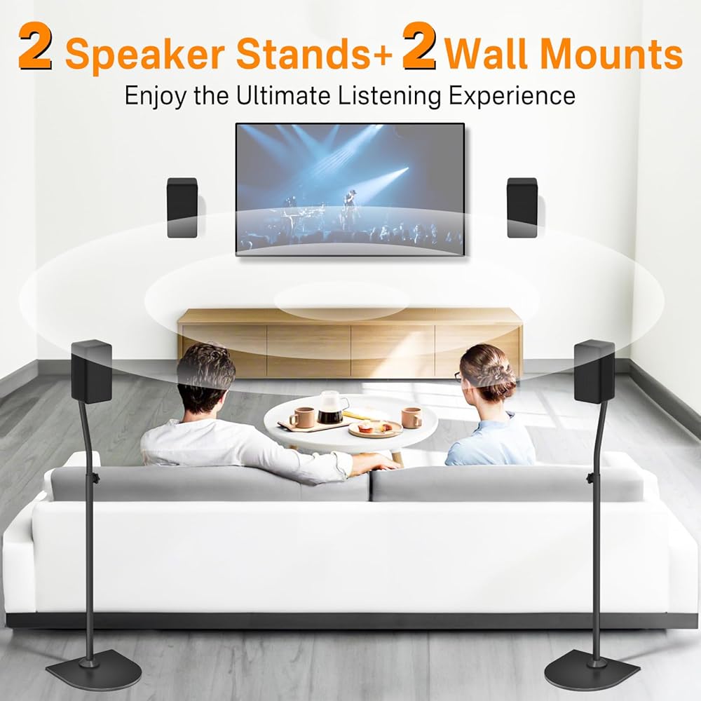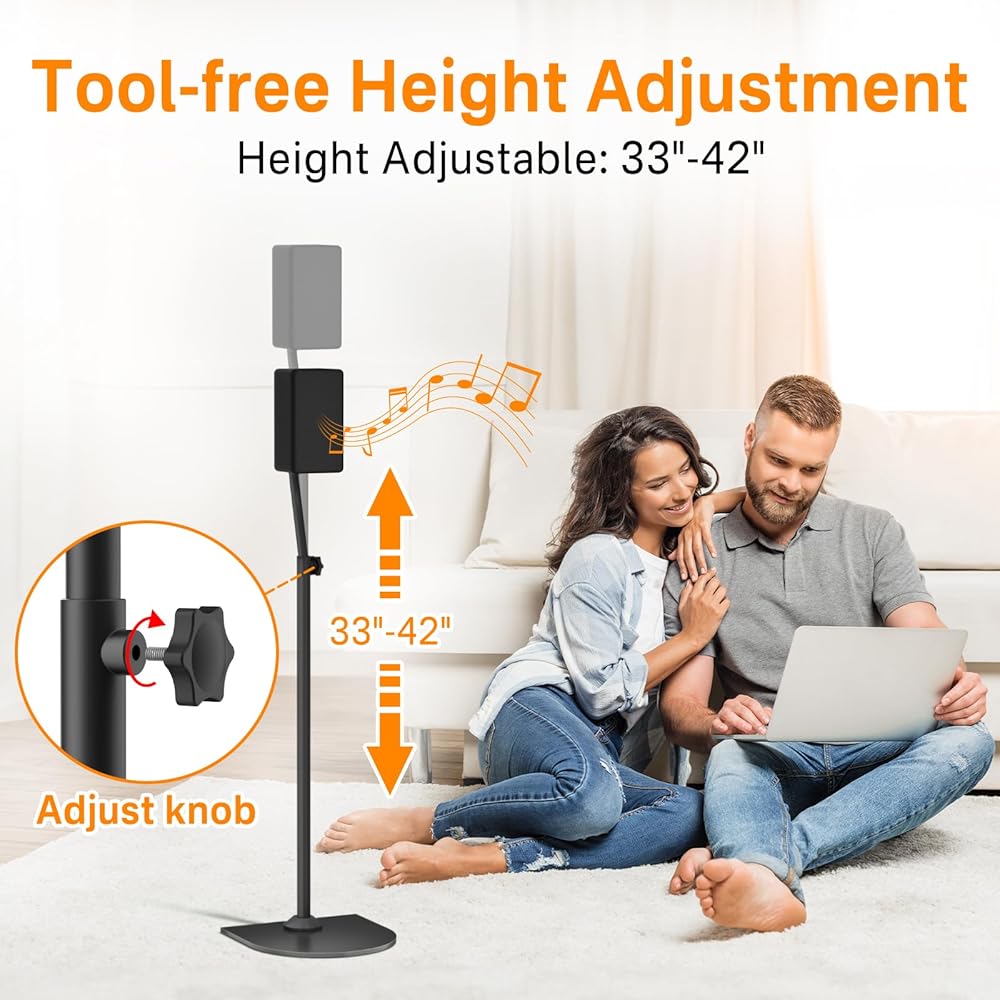 حامل مكبر صوت عالمي بارتفاع قابل للتعديل يمتد من 33 بوصة إلى 42 بوصة - حامل مكبر صوت لهواتف سامسونج وVizio وSony وLogitech والمزيد من مكبرات الصوت الخلفية مع مكبر صوت مثبت على الحائط يحمل حتى 12 رطلًا