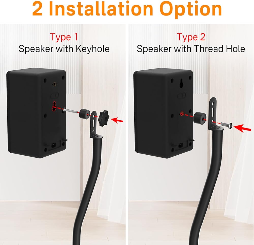 توافق متعدد الاستخدامات: يتم توصيل مكبر الصوت المحيطي الخاص بنا بسهولة مع فتحات الخيوط المختلفة أو مكبرات الصوت ذات فتحة المفتاح، كما أن حامل السماعات الخلفية العالمية مناسب لأجهزة Samsung وVizio وSony وTCL وRoku وLogitech وJBL وKlipsch والمزيد من مكبرات الصوت. مصنوعة من الفولاذ عالي التحمل، وتدعم ما يصل إلى 12 رطلاً. ملاحظة: يرجى اختيار طريقة التثبيت بناءً على موضع فتحة تثبيت مكبر الصوت الخاص بك.