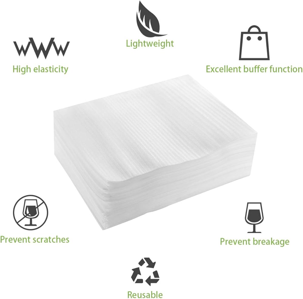 أوراق تعبئة إسفنجية من NUOBESTY (100، 15 × 20 سم) أوراق لف إسفنجية للوسادة، وأكياس لتحريك لوح الرغوة