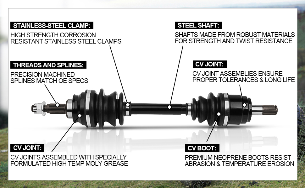 • استبدال صانعي القطع الأصلية. مجموعة محور السيرة الذاتية الكاملة الجديدة تمامًا. عملية تثبيت بسيطة ومباشرة. يرجى اتباع إجراءات التثبيت المناسبة وإرشادات السلامة.