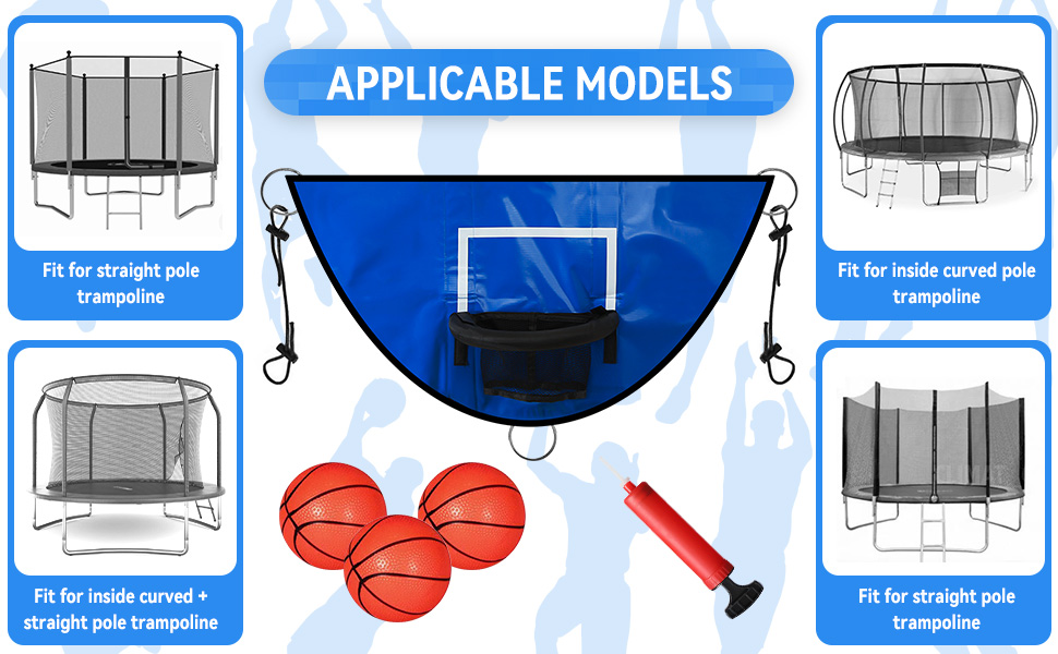 [تشمل العبوة]: سوف تحصل على مجموعة كرة السلة الترامبولين، بما في ذلك حامل كرة السلة*1 إطار كرة السلة*1 دليل التعليمات*1 سلك قابل للتعديل*2 كرة سلة صغيرة*3 مضخة كرة*1.