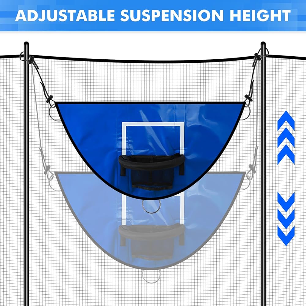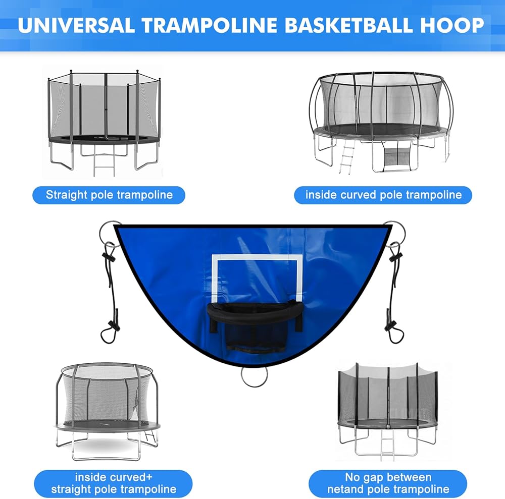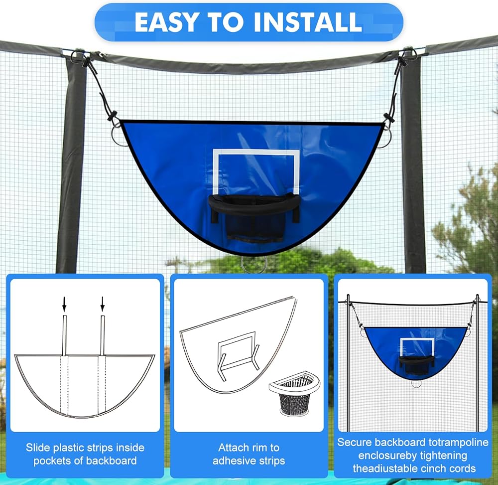 [سهلة التركيب: لا توجد حاجة لأي أدوات، فقط استخدم الحبال القابلة للتعديل لربط اللوحة الخلفية بأغطية عمود حاوية الترامبولين. الحبال القابلة للتعديل تناسب جميع الترامبولين ذات الحجم القياسي مع حاويات وأغطية عمود.
