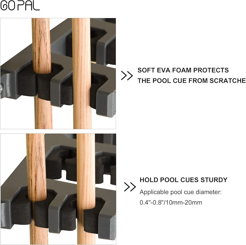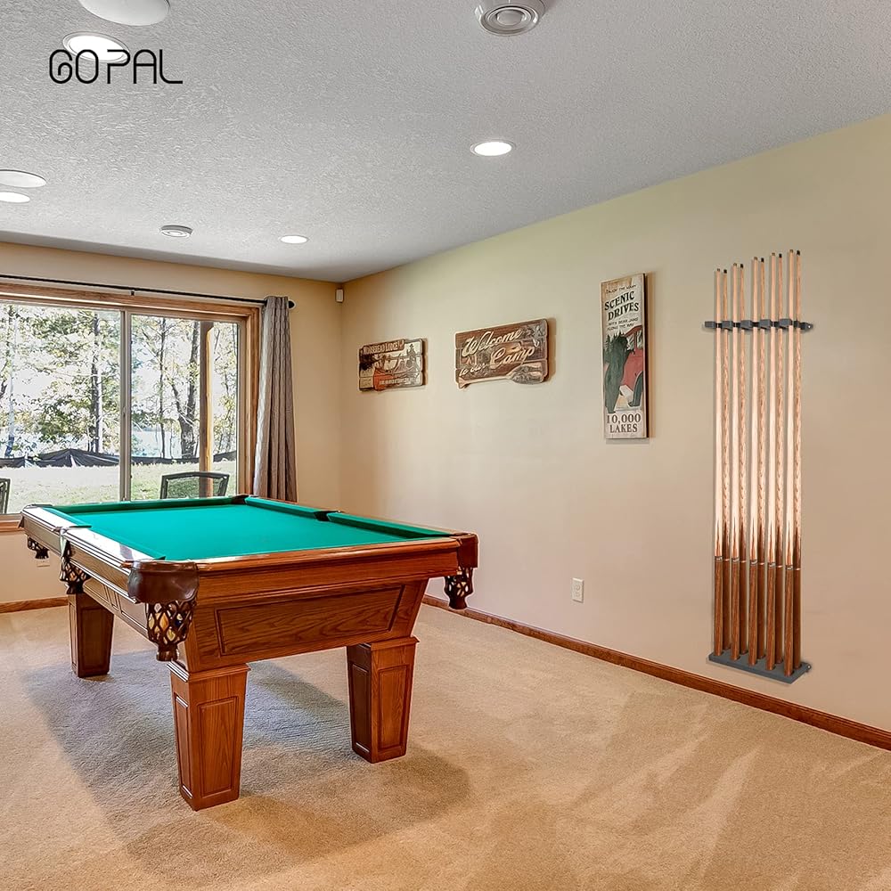 【حامل على الحائط】: حافظ على غرفة الألعاب الخاصة بك خالية من الفوضى وقم بتخزين إشاراتك في مكان آمن. حافظ على تنظيم عصي البلياردو الخاصة بك. يعد حامل عصا البلياردو طريقة رائعة لزيادة المساحات حتى في أصغر غرف الألعاب.