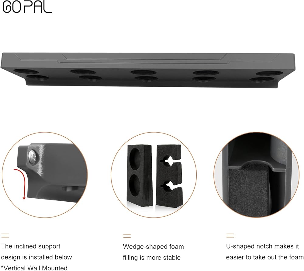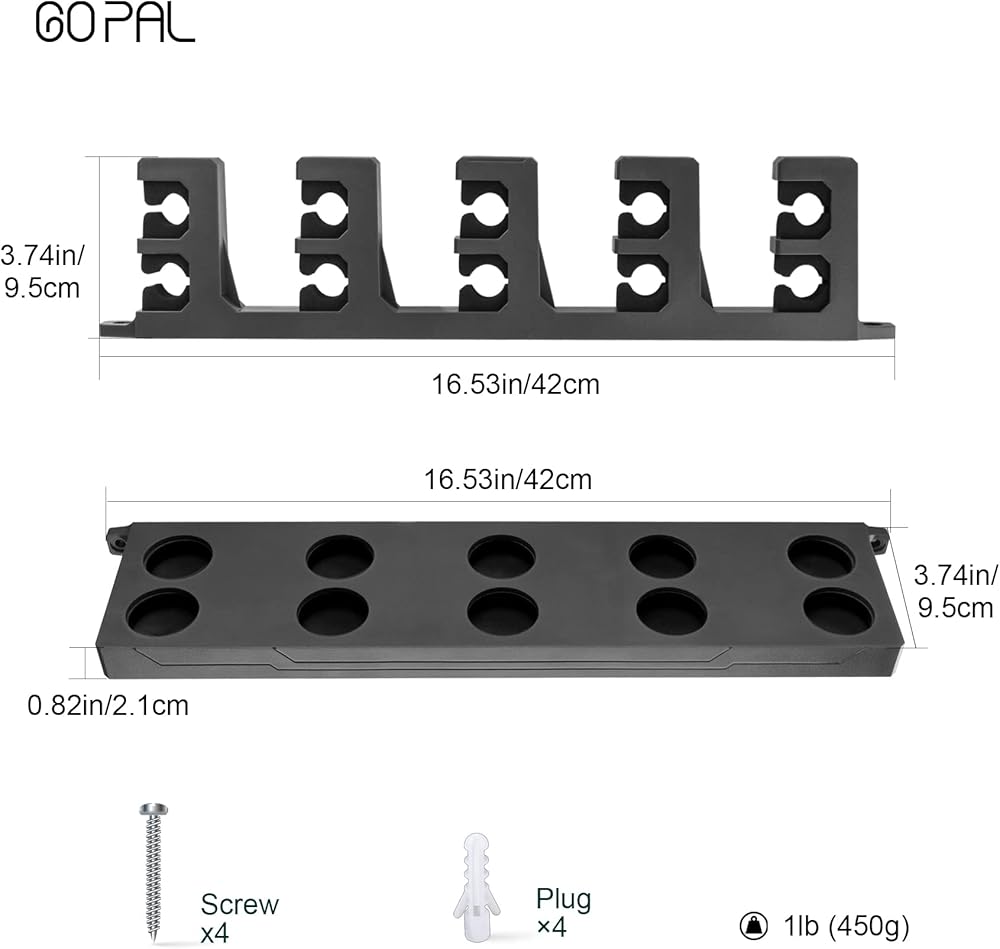 【خياران】: لدينا نوعان من حامل العصا: النمط الرأسي والنمط الأفقي. يمكن تركيب كلاهما على جدار المرآب أو ورشة العمل، النمط الأفقي يحافظ على عصا البلياردو باهظة الثمن بعيدًا عن الأرض لمنع التلف.