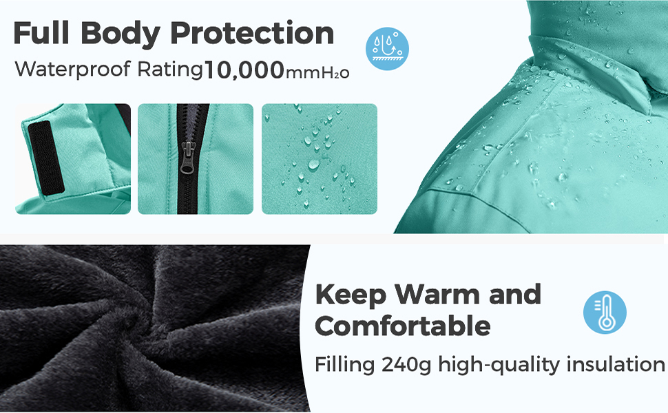 سريع الجفاف ومريح - تم تصميم سترة التزلج المقاومة للماء للفتيات لإبقاء الأطفال جافين حتى في الطقس الرطب. تم تجهيز الغلاف بغشاء PU مقاوم للماء بدرجة 10000 مم/H2O، مما يضمن الجفاف والراحة.