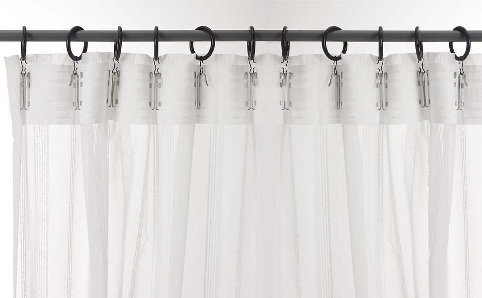 الميزات الرئيسية: شريط طيات الستارة هذا سهل التجميع للغاية، وهناك تعليمات مرفقة في العبوة؛ يمكن لهذا الخطاف على شكل حرف W أن يتحمل ستائر ثقيلة الوزن ويسهل دفعها، ويمكن أن يجعل الستائر سهلة الفتح والإغلاق.