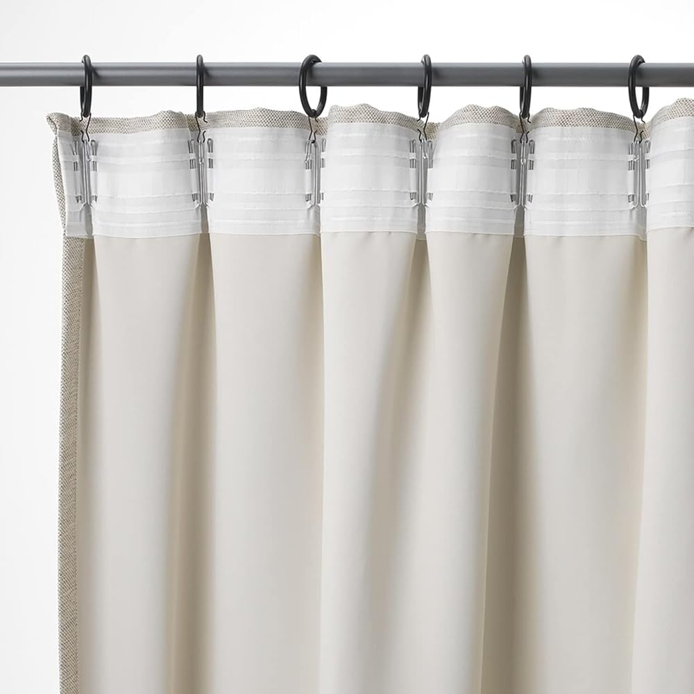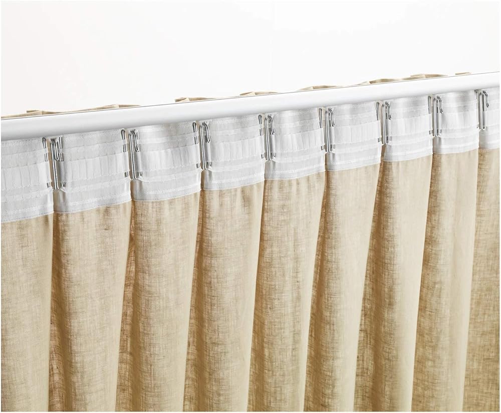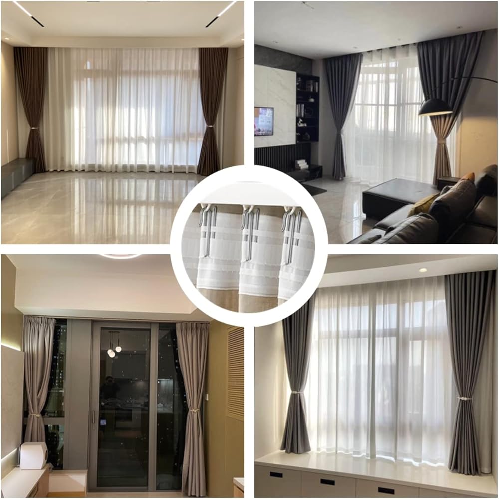 جودة عالية: شريط الستارة الخاص بنا مصنوع من البوليستر المعاد تدويره، وهو صديق للبيئة ومتين. خطافات الستارة مصنوعة من الفولاذ المقاوم للصدأ عالي الجودة، ويمكن استخدامها لفترة طويلة، ولا حاجة للاستبدال عادة.