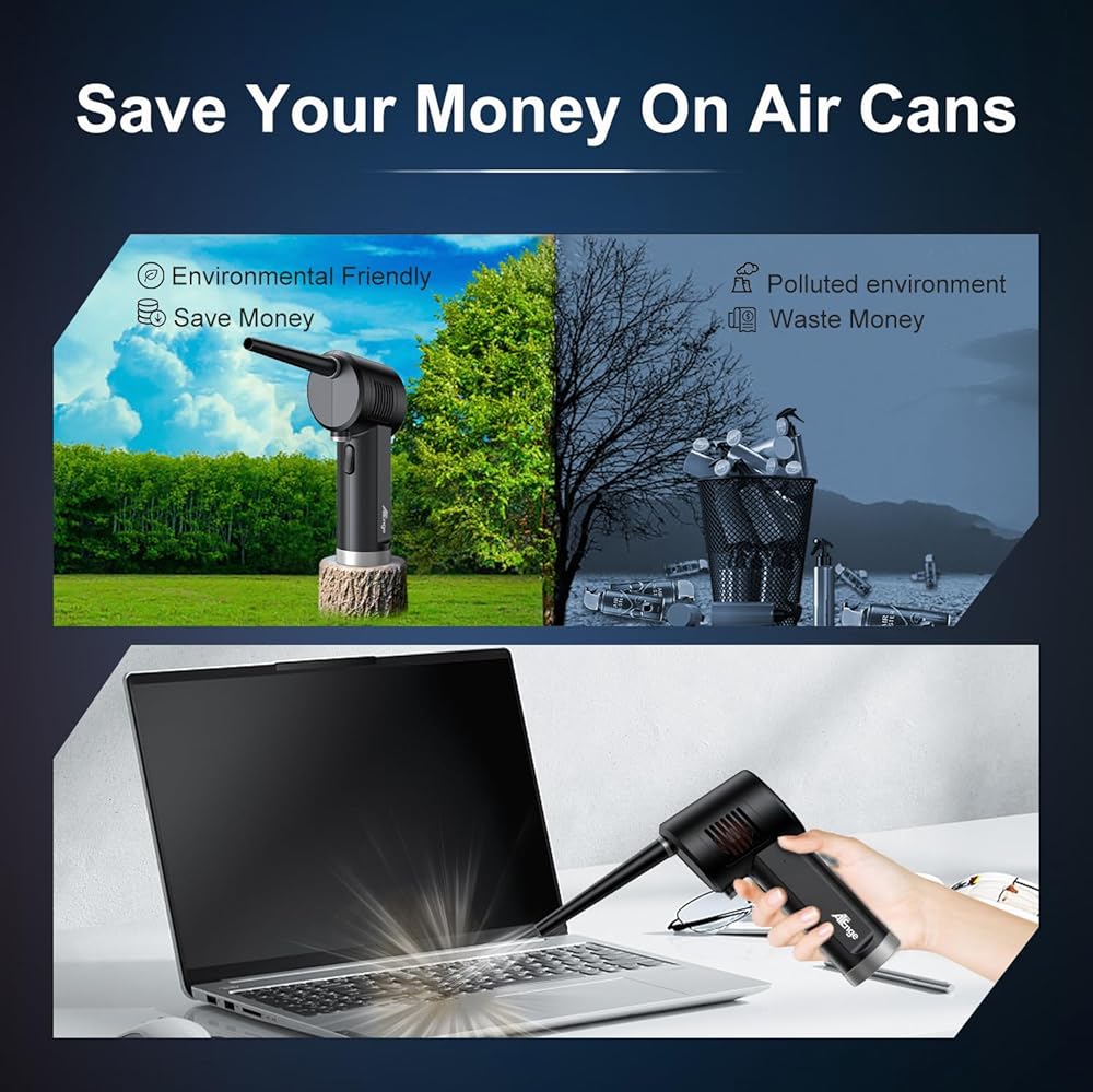 ⚡ 【منفضة غبار كهربائية قوية 】 منفضة الهواء الكهربائية ATengeus لديها وظيفة تنظيف قوية. يمكن أن تصل السرعة القصوى للمحرك الفائق إلى 41000 دورة في الدقيقة. مجهزة بفوهة وفرش تنظيف لتنظيف الغبار الصغير بعمق. مناسب لتنظيف أجهزة الكمبيوتر وعدسات الكاميرا وأجهزة PS5 ومكيفات الهواء والأرائك والمعدات الإلكترونية والمعدات الطبية وما إلى ذلك.